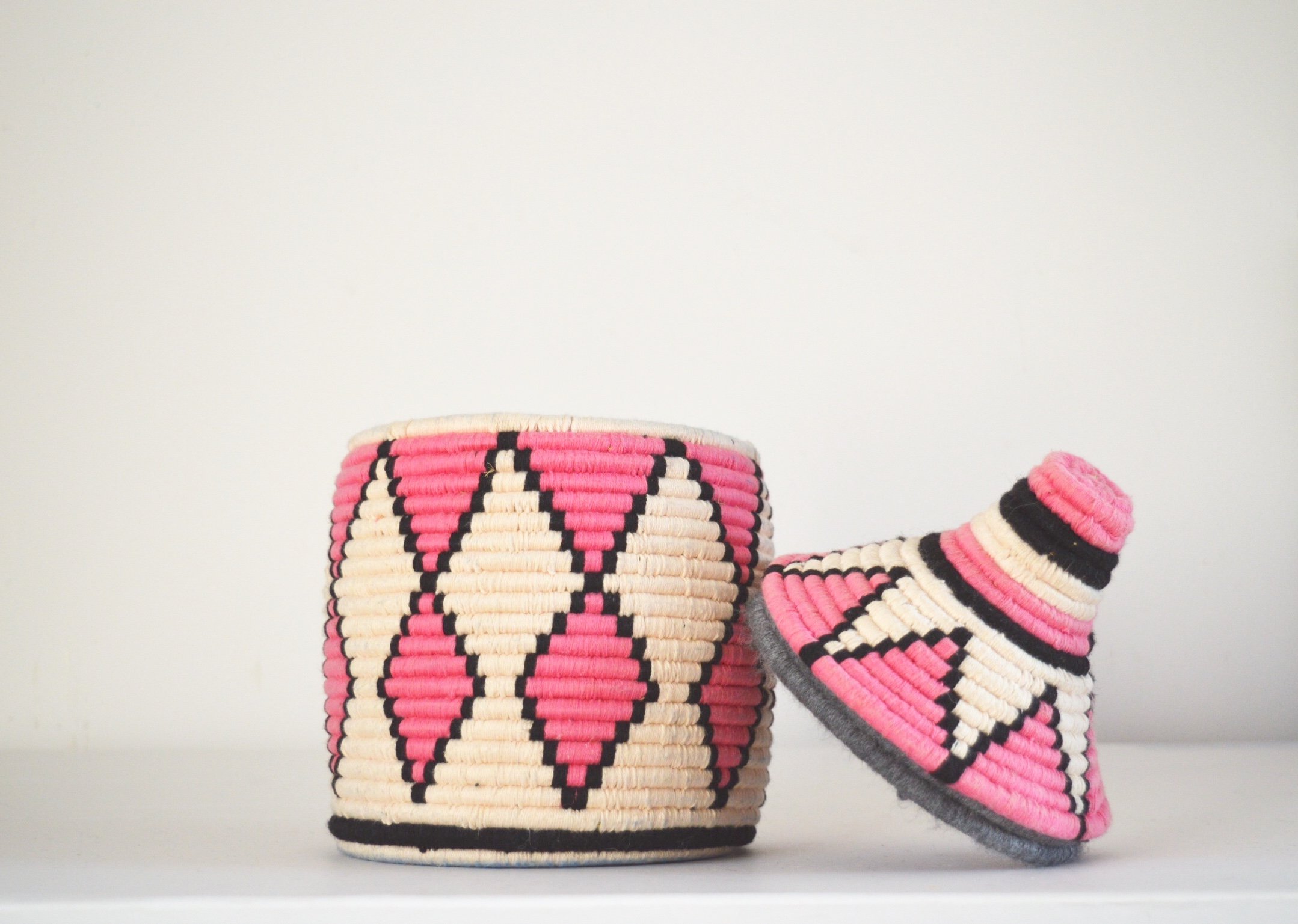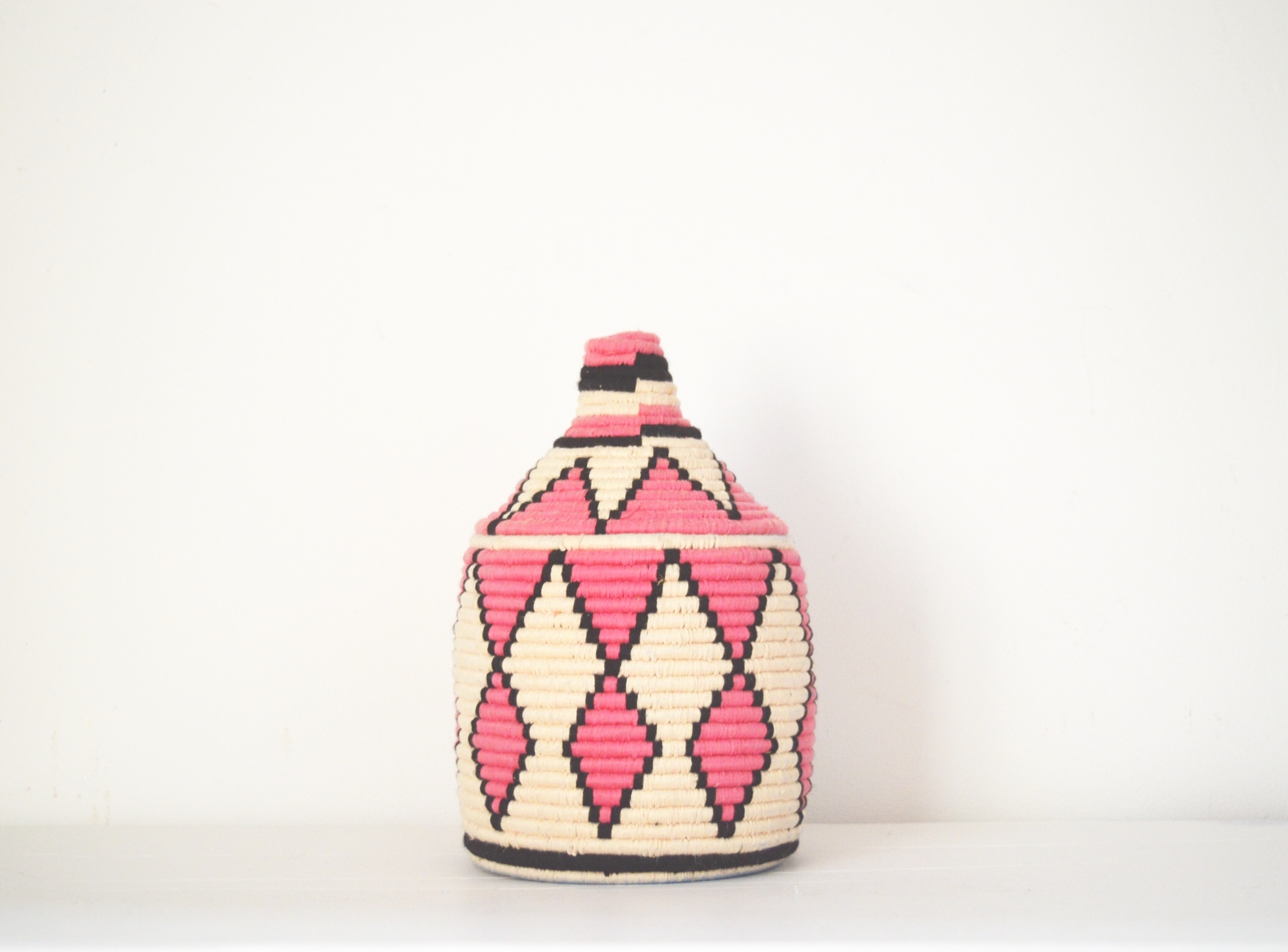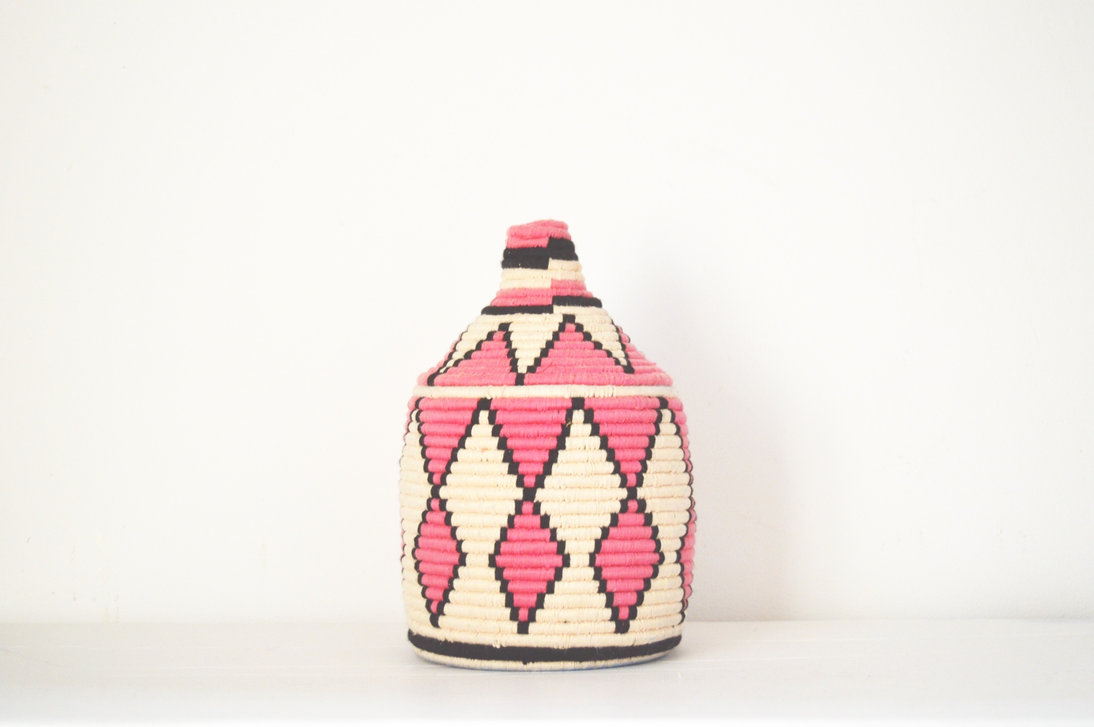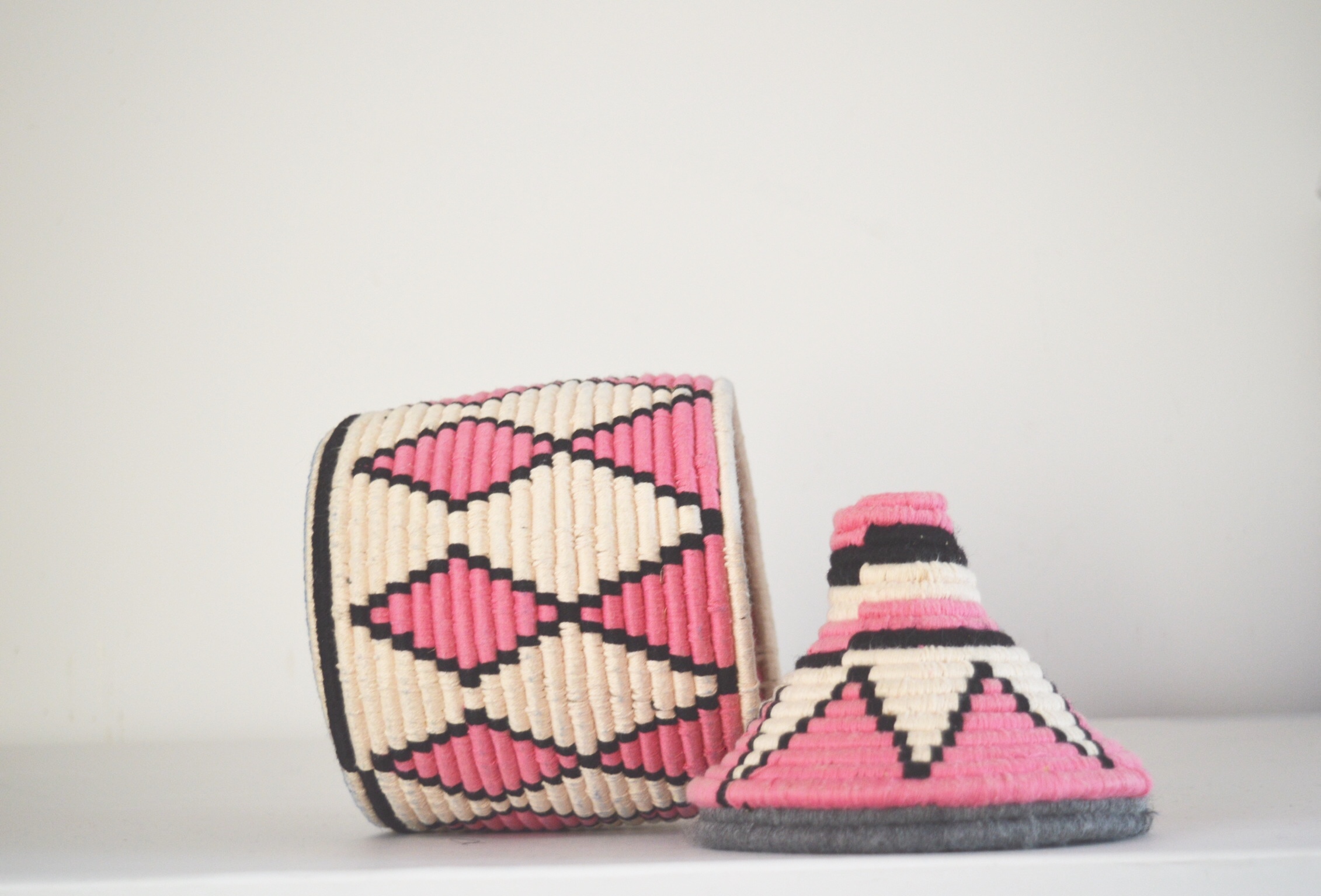 SOLD SOLD SOLD Berber Basket Handwoven Vintage Moroccan Wool Lidded Basket