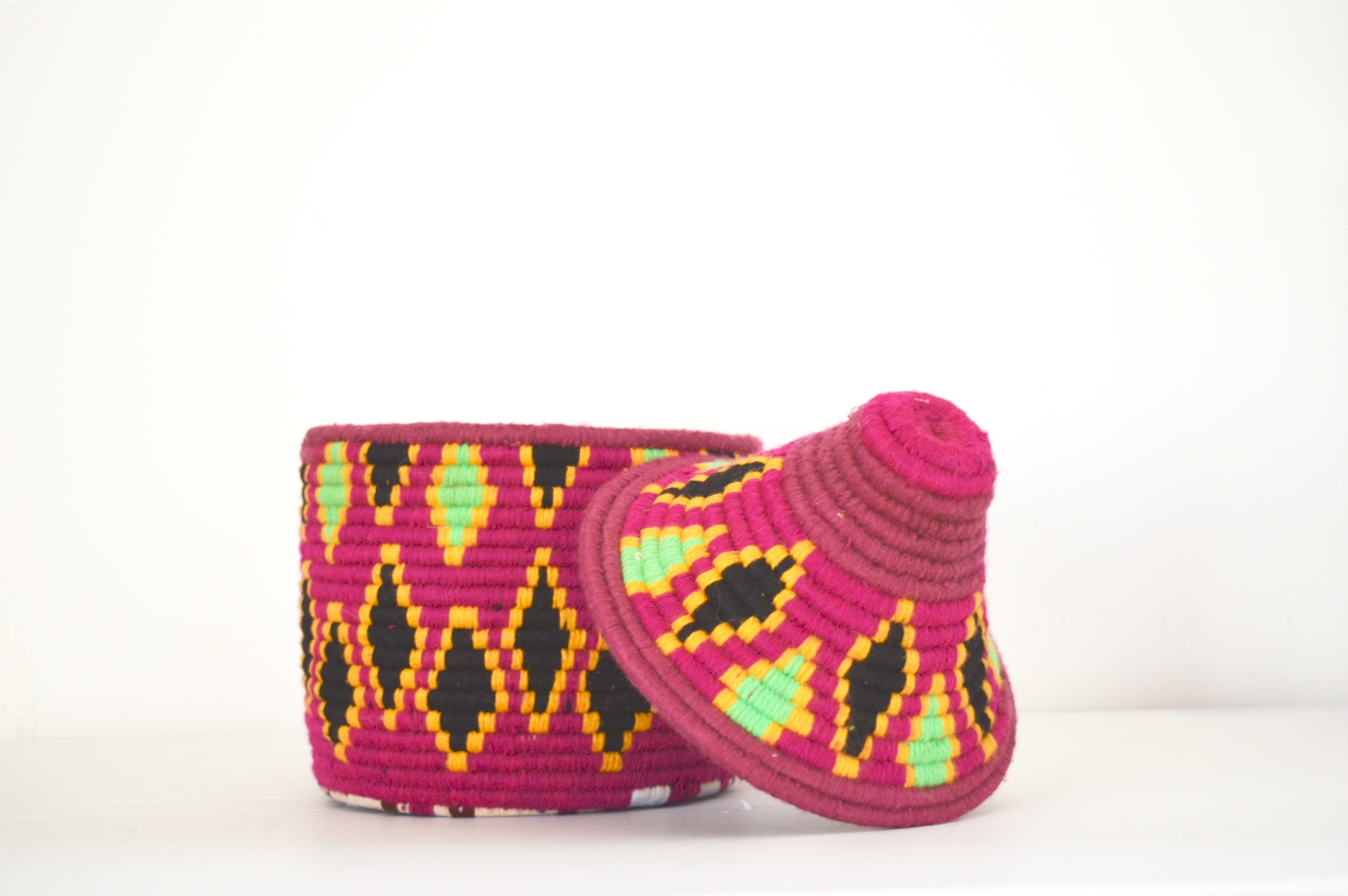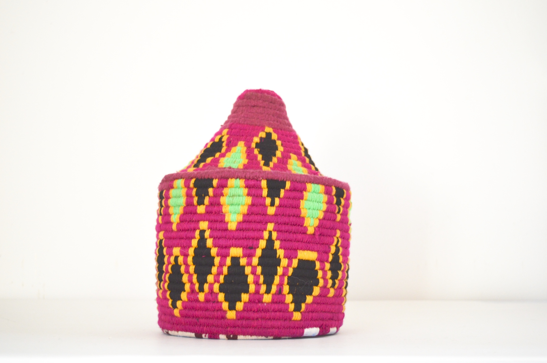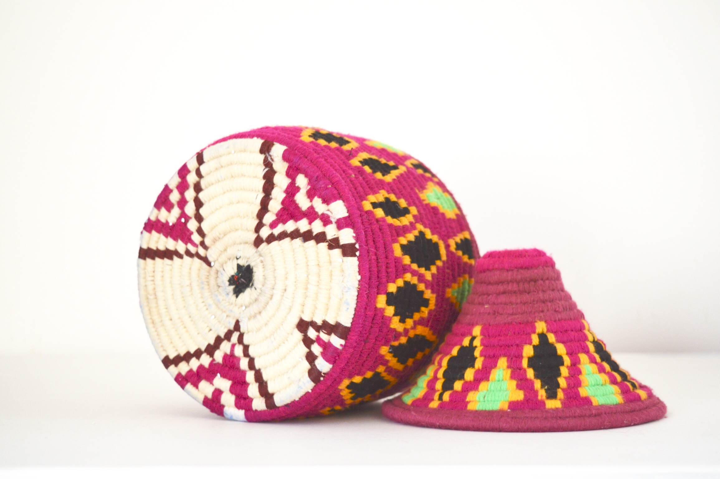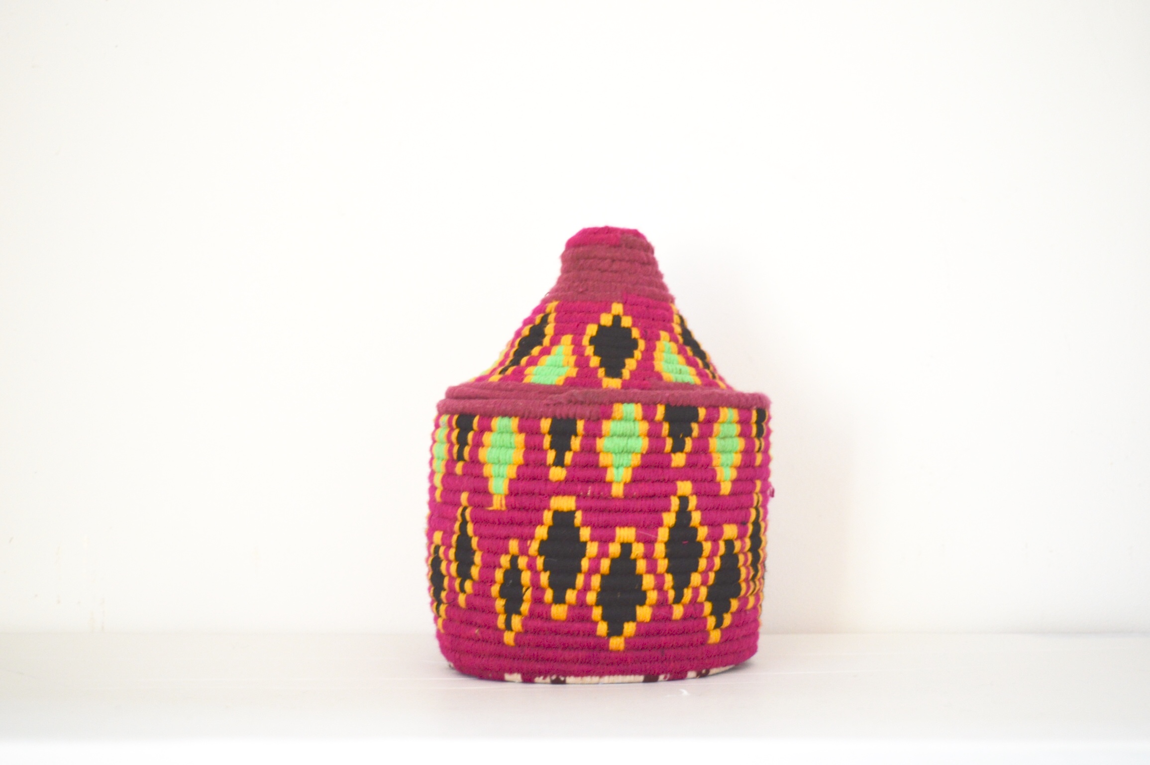 SOLD SOLD SOLD Berber Basket Handwoven Vintage Moroccan Wool Lidded Basket