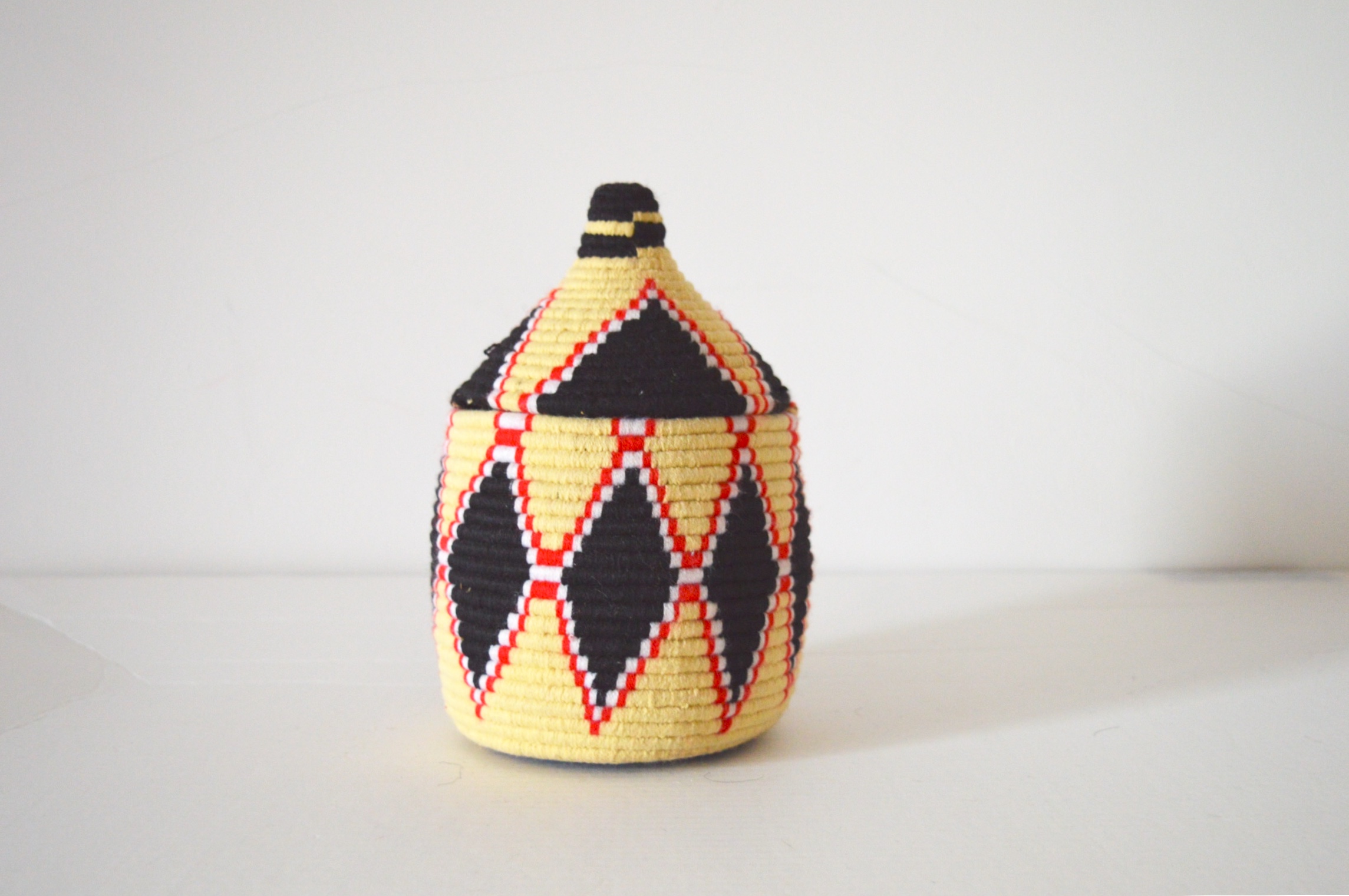 SOLD SOLD SOLD Berber Basket Handwoven Vintage Moroccan Wool Lidded Basket
