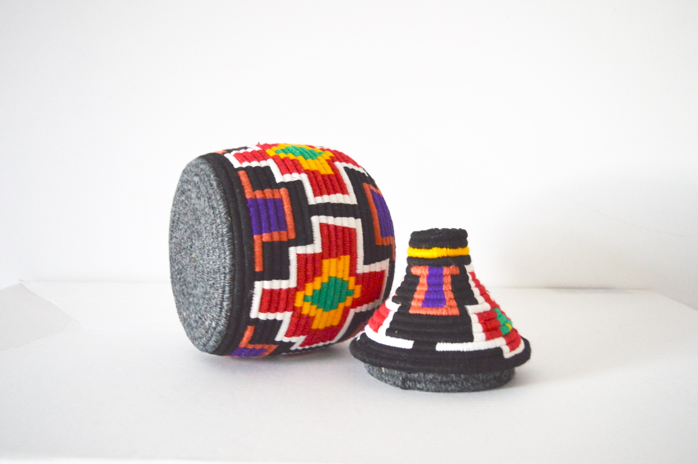 SOLD SOLD SOLD Berber Basket Handwoven Vintage Moroccan Wool Lidded Basket