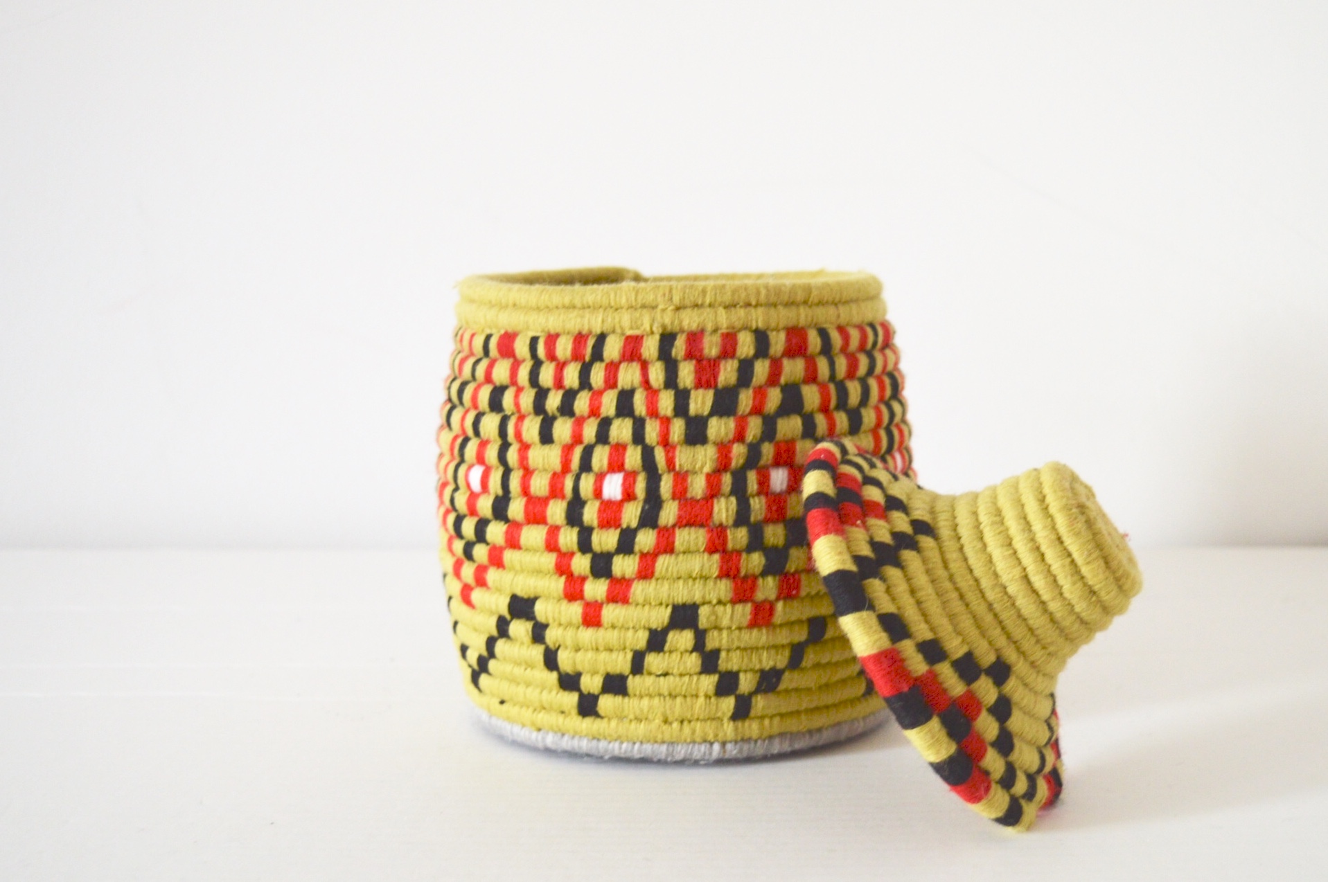 SOLD SOLD SOLD Berber Basket Handwoven Vintage Moroccan Wool Lidded Basket