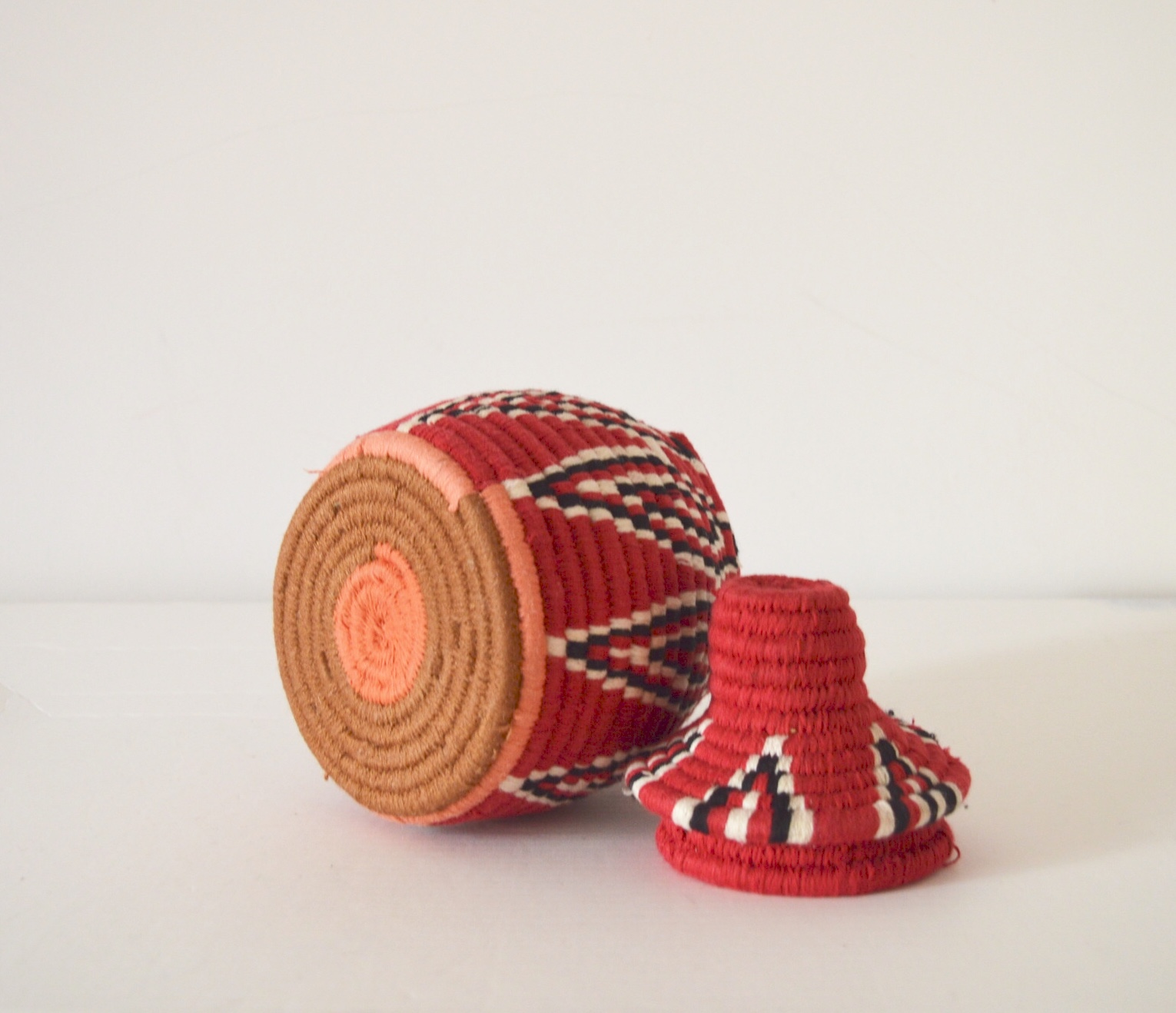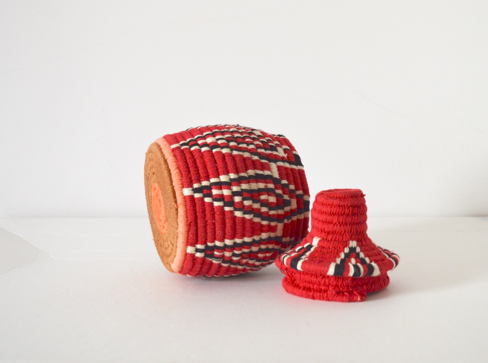 SOLD SOLD SOLD Berber Basket Handwoven Vintage Moroccan Wool Lidded Basket