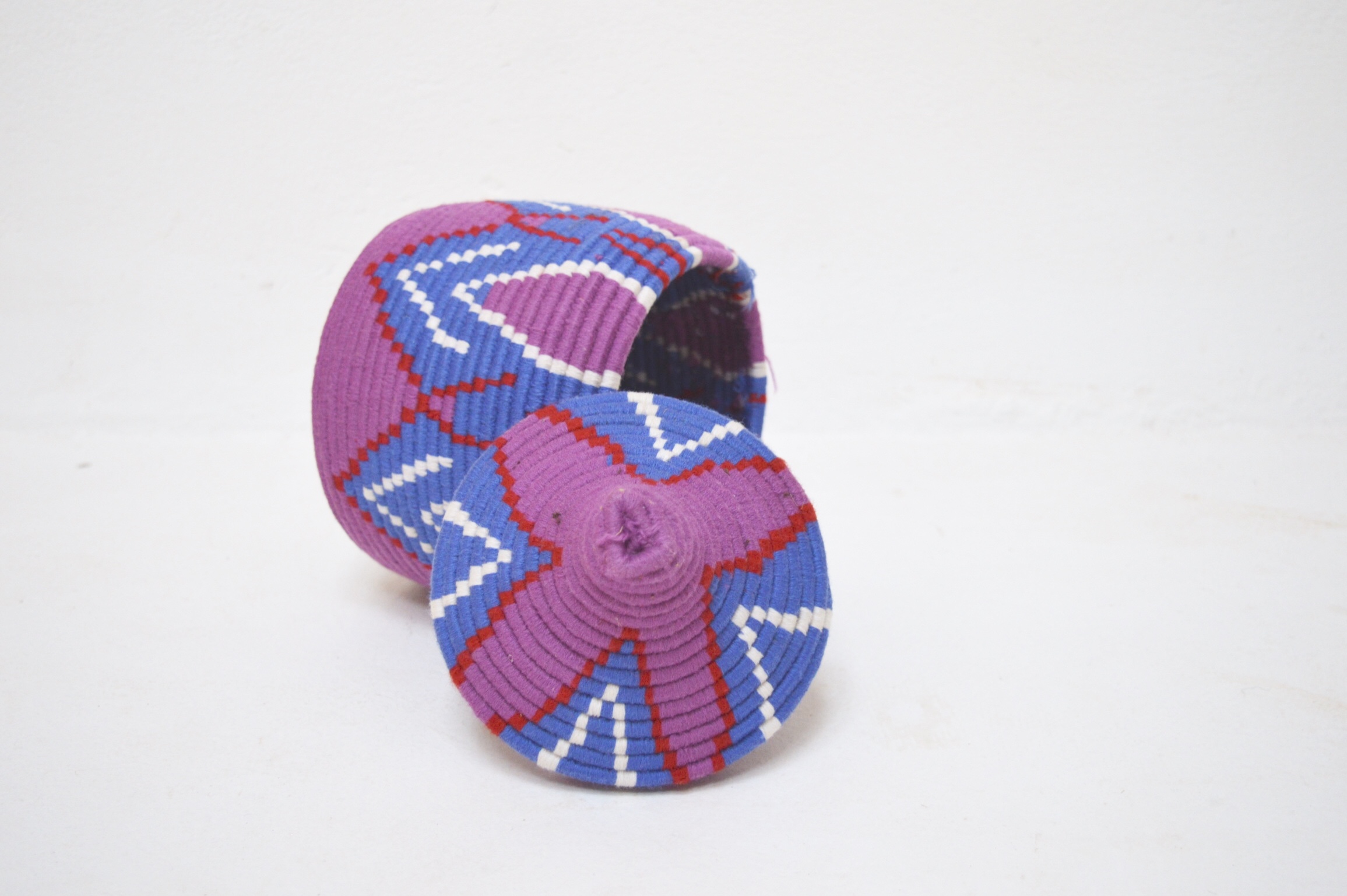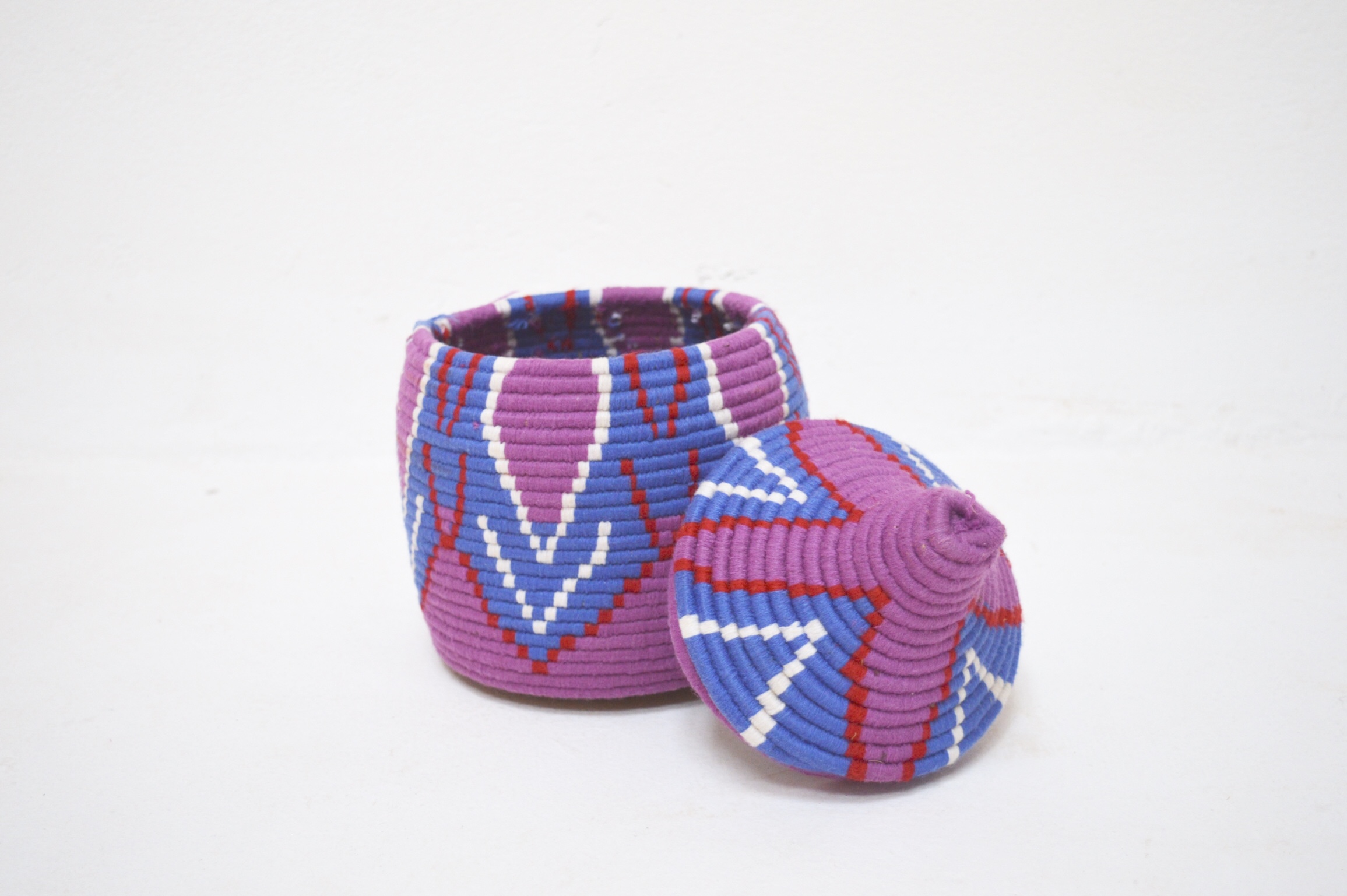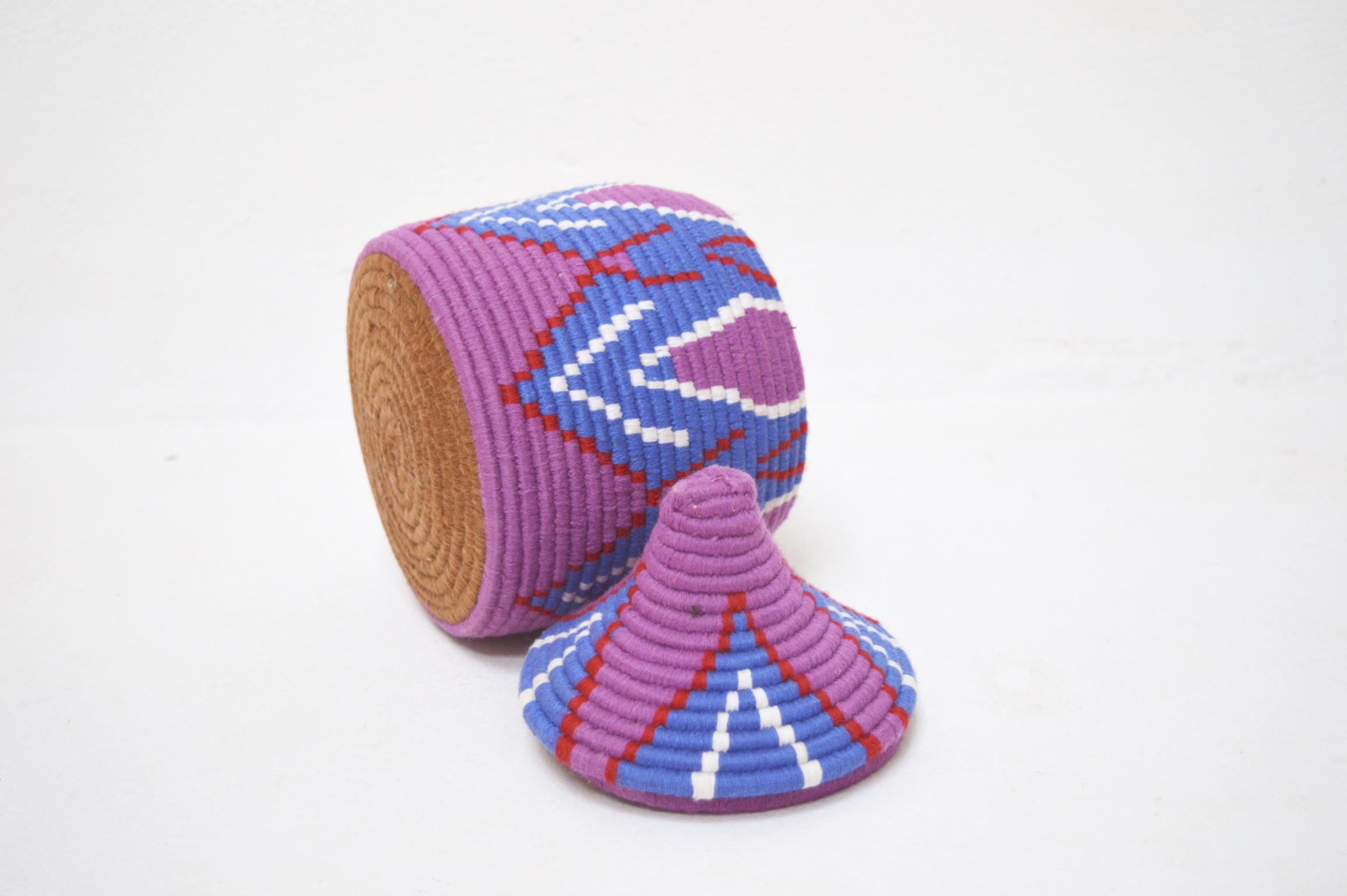 Berber Basket Handwoven Vintage Moroccan Wool Lidded Basket