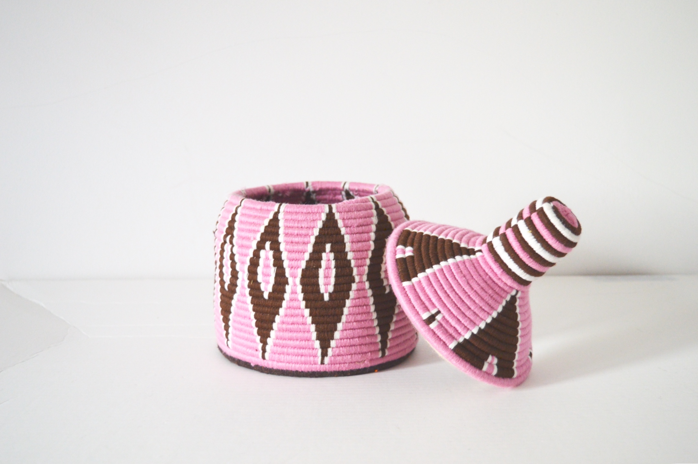 SOLD SOLD SOLD Berber Basket Handwoven Vintage Moroccan Wool Lidded Basket