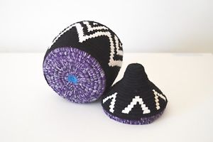 Handwoven Moroccan Berber Baskets were crafted to store "Khobz" Bread. Contrasting colours and Abstract designs create an individual unique item.