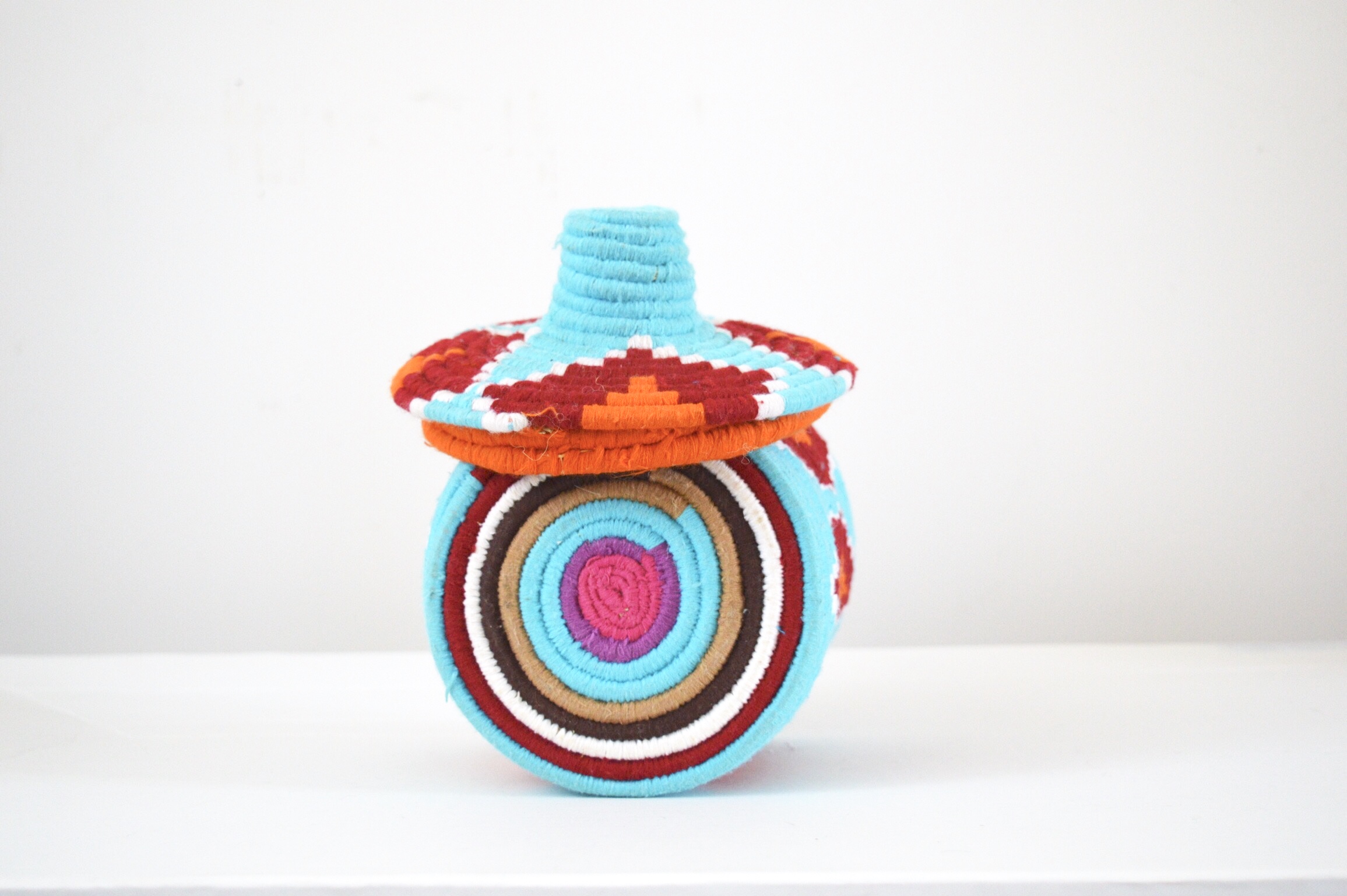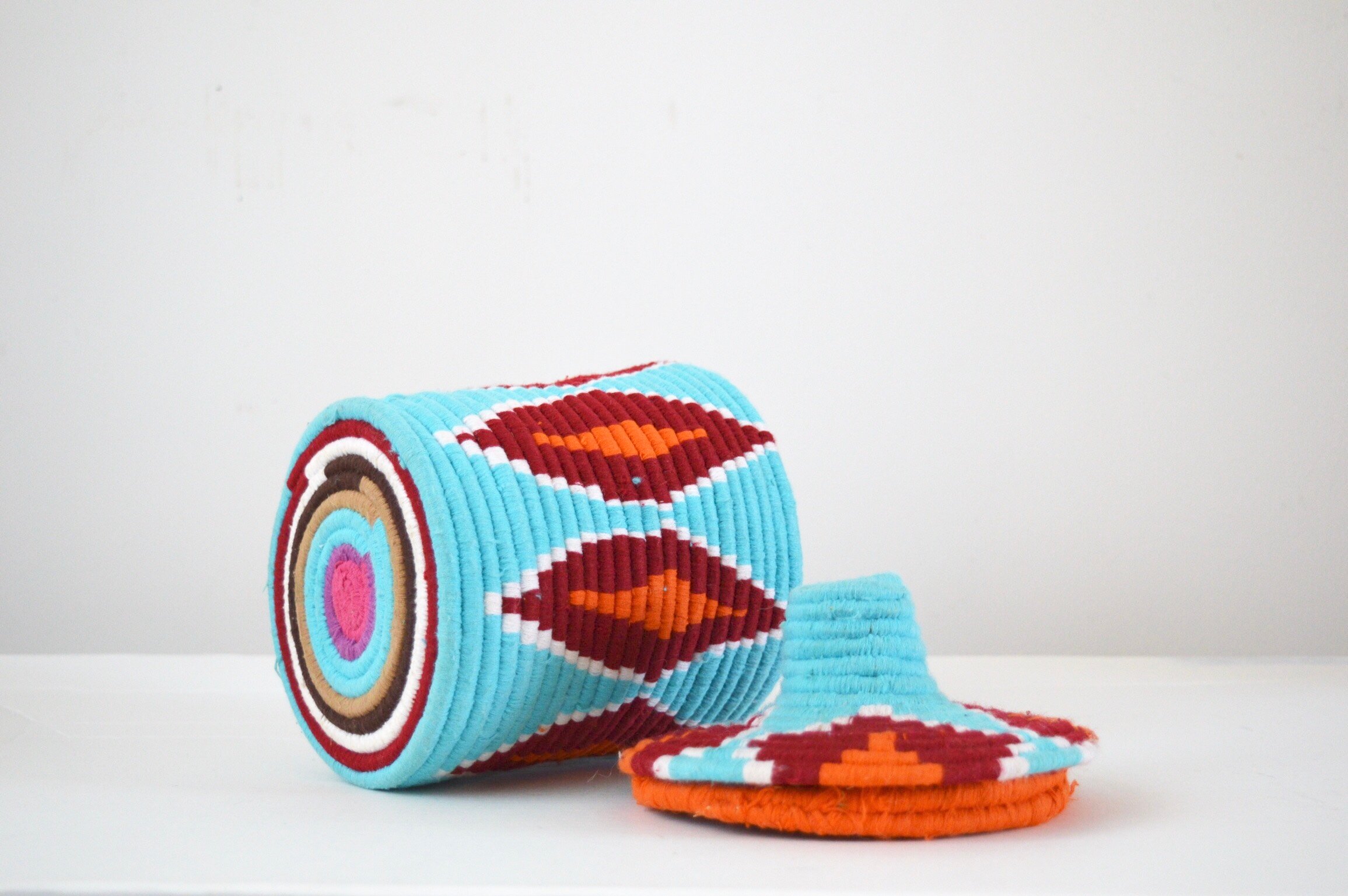 Berber Basket Handwoven Moroccan Wool Lidded Basket