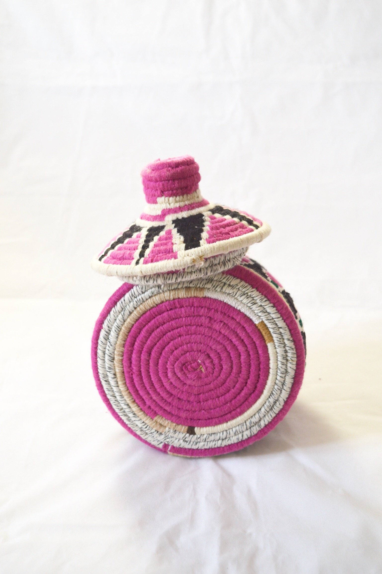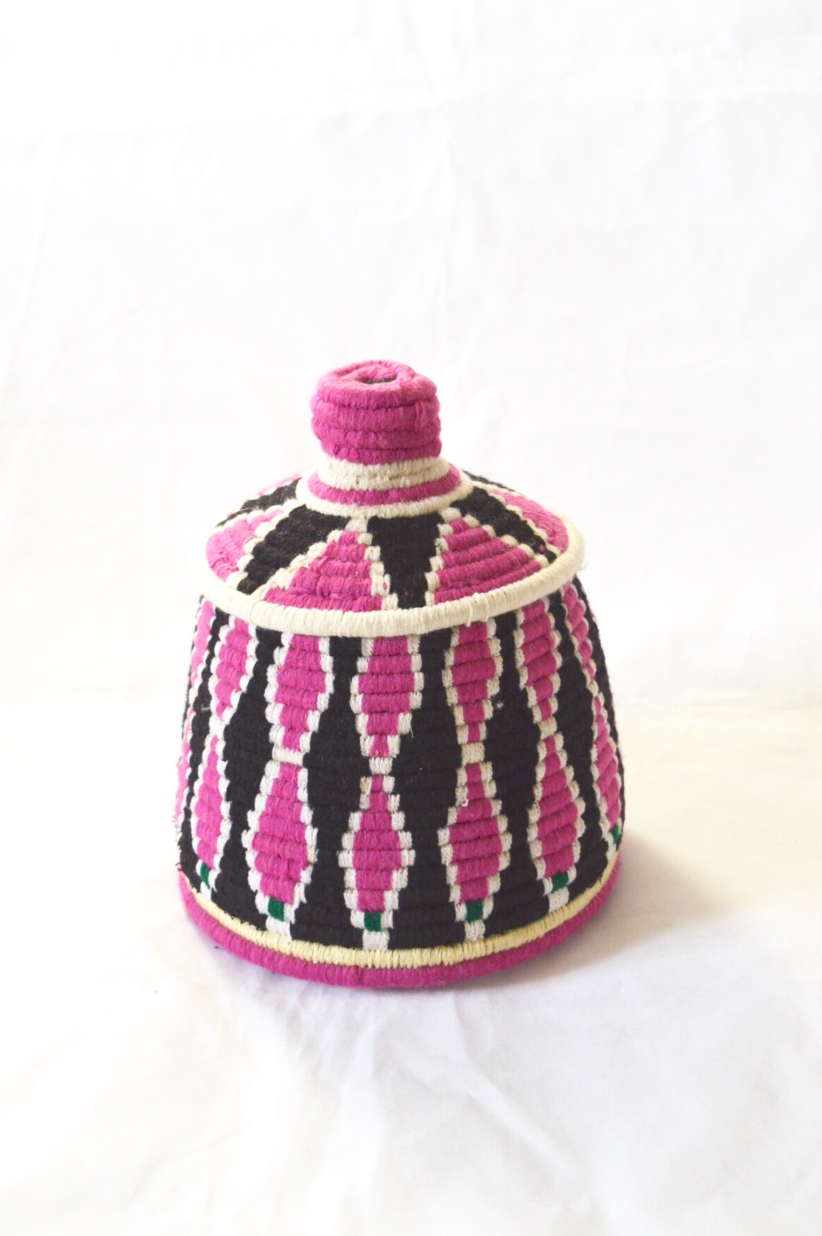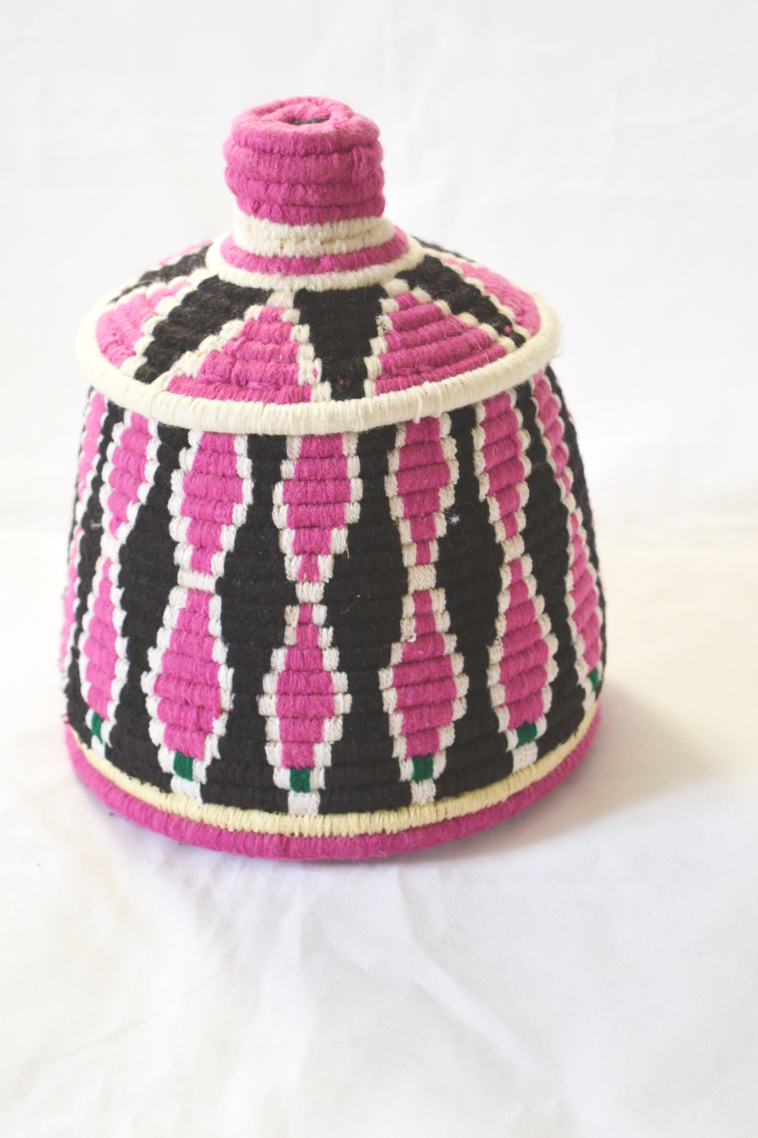 SOLD SOLD SOLD Berber Basket Handwoven Vintage Moroccan Wool Lidded Basket