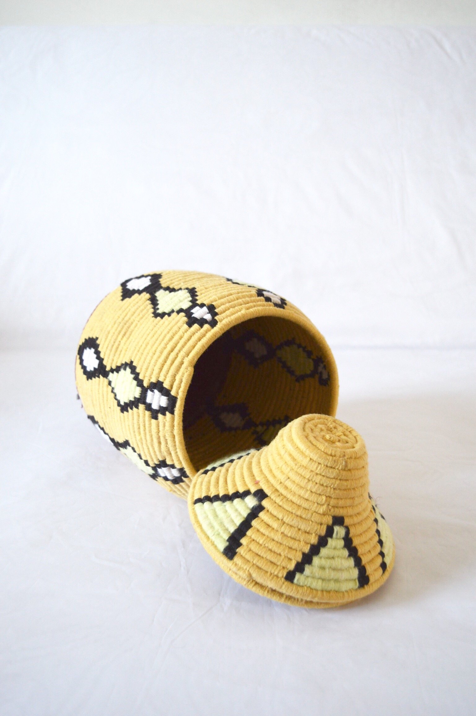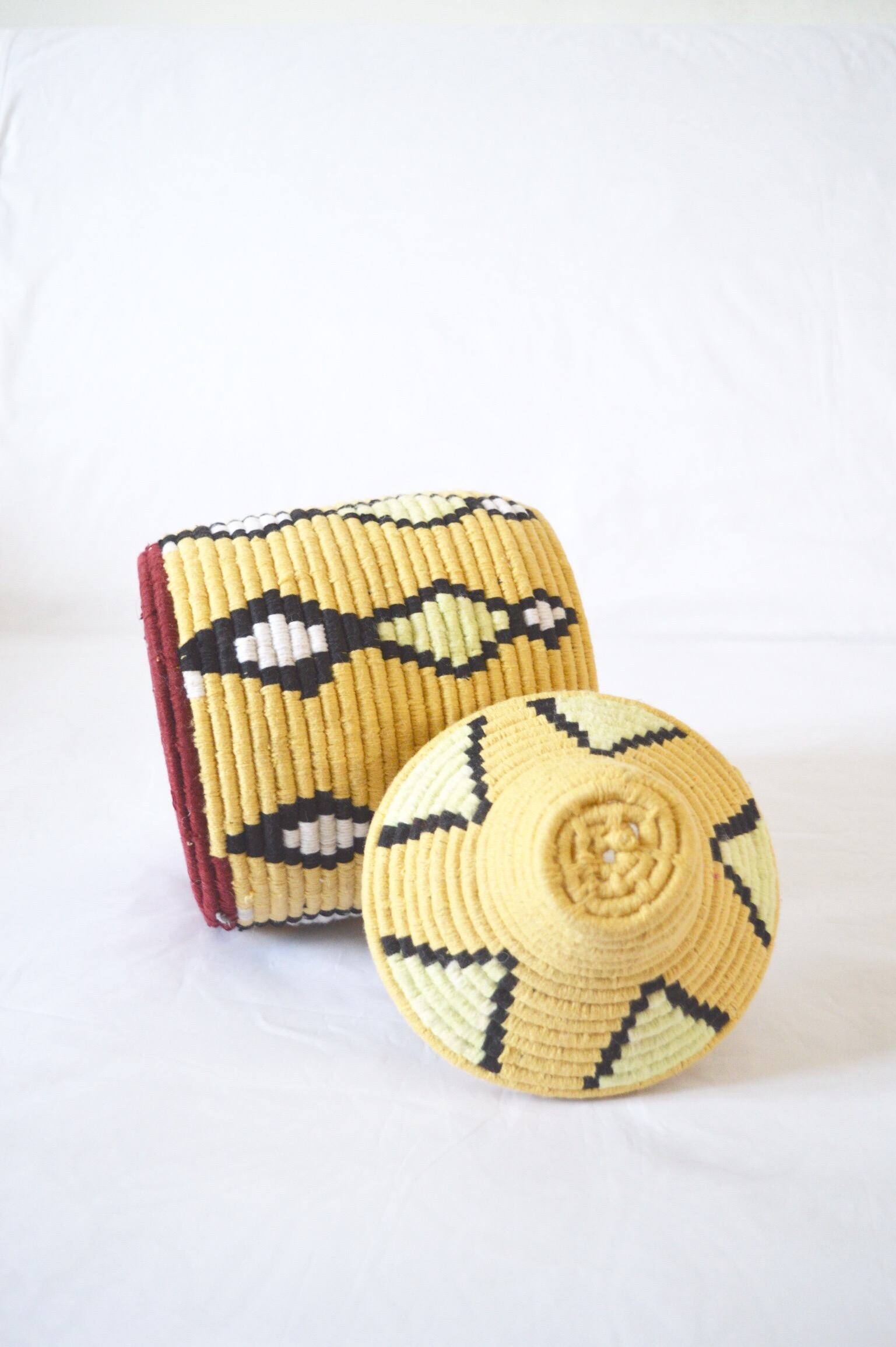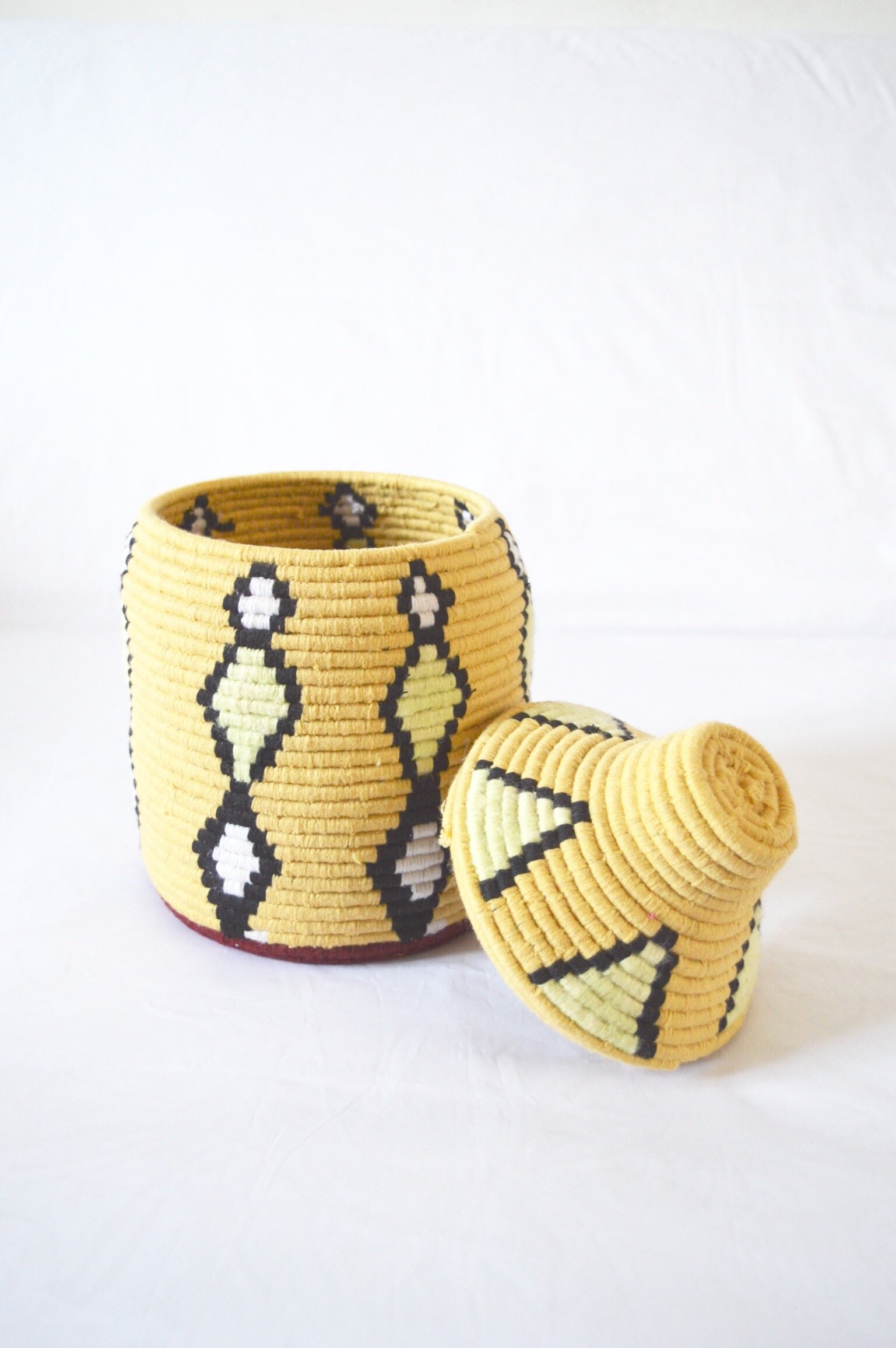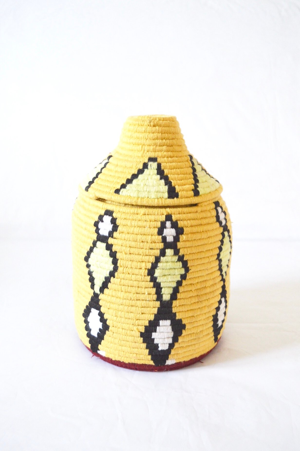 SOLD SOLD SOLD Berber Basket Handwoven Moroccan Wool Lidded Basket