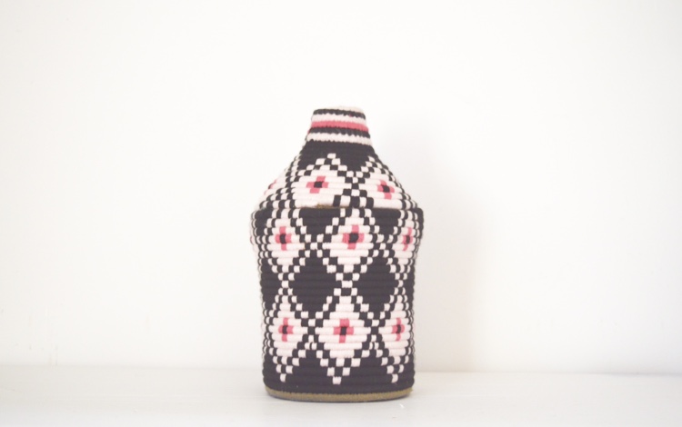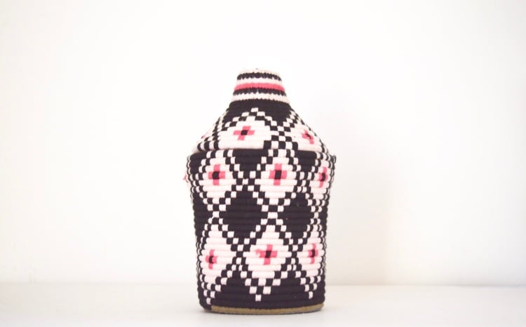 Berber Basket Handwoven Vintage Moroccan Wool Lidded Basket
