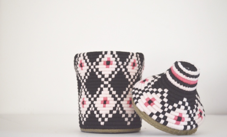 Handwoven Vintage Moroccan Berber Baskets were crafted to store "Khobz" Bread. Contrasting colours and Abstract designs create an individual unique item.