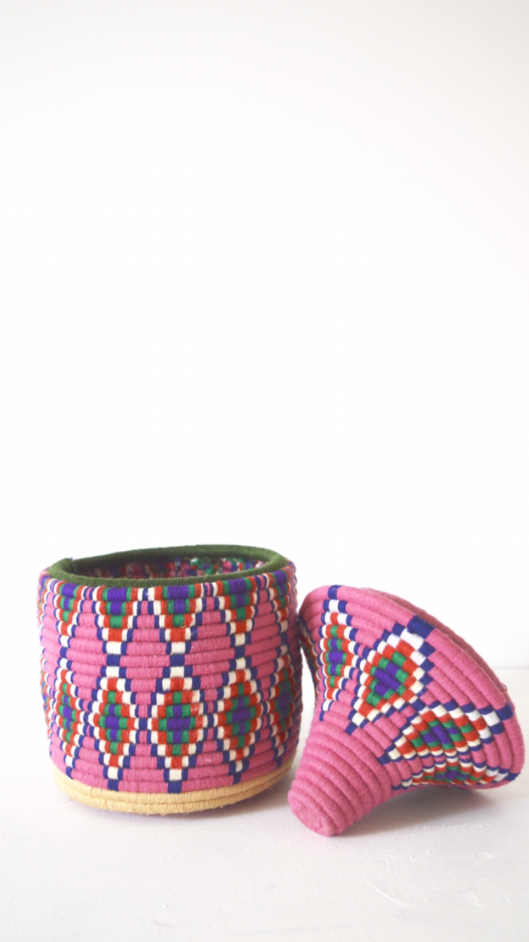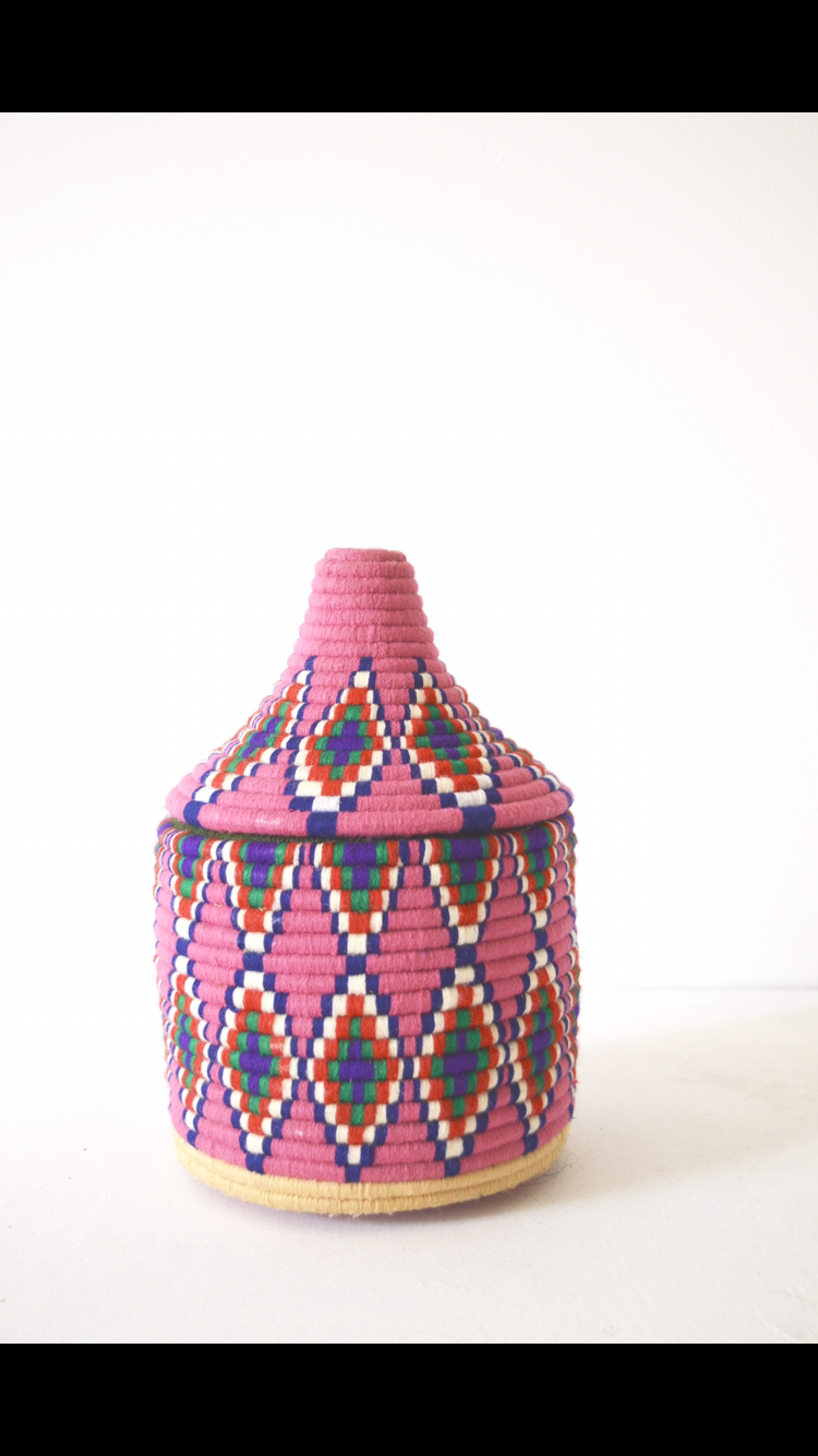 SOLC DOLD SOLD Berber Basket Handwoven Moroccan Wool Lidded Basket