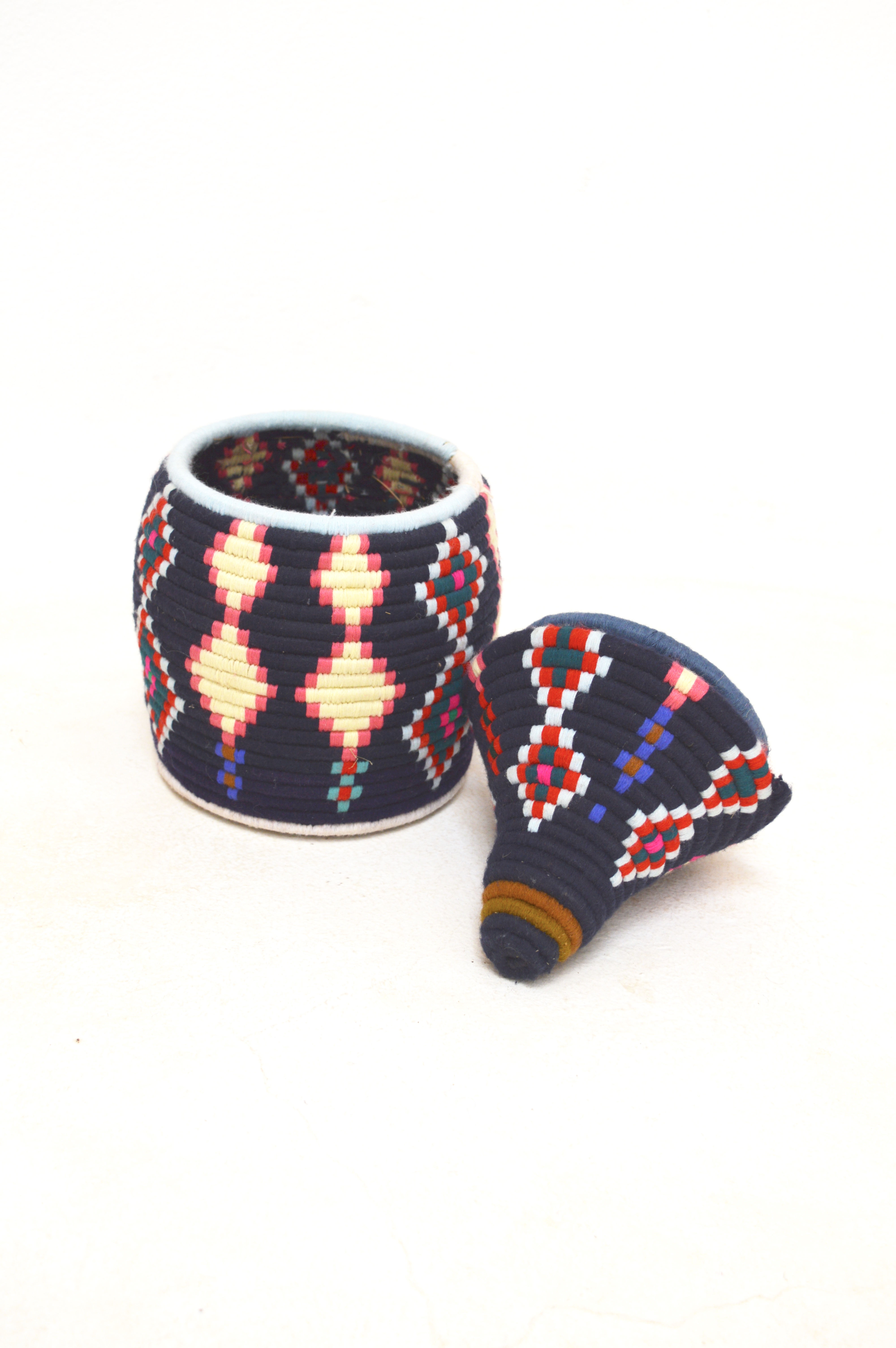 Berber Basket Handwoven Moroccan Wool Lidded Basket