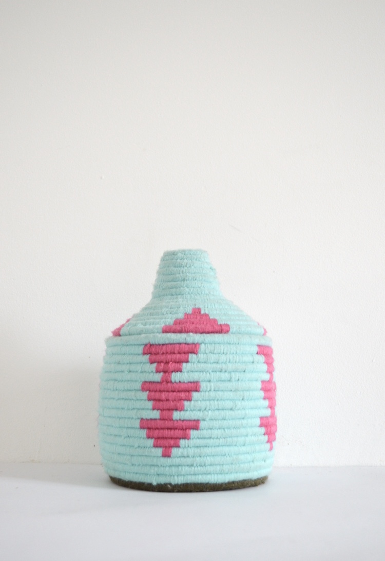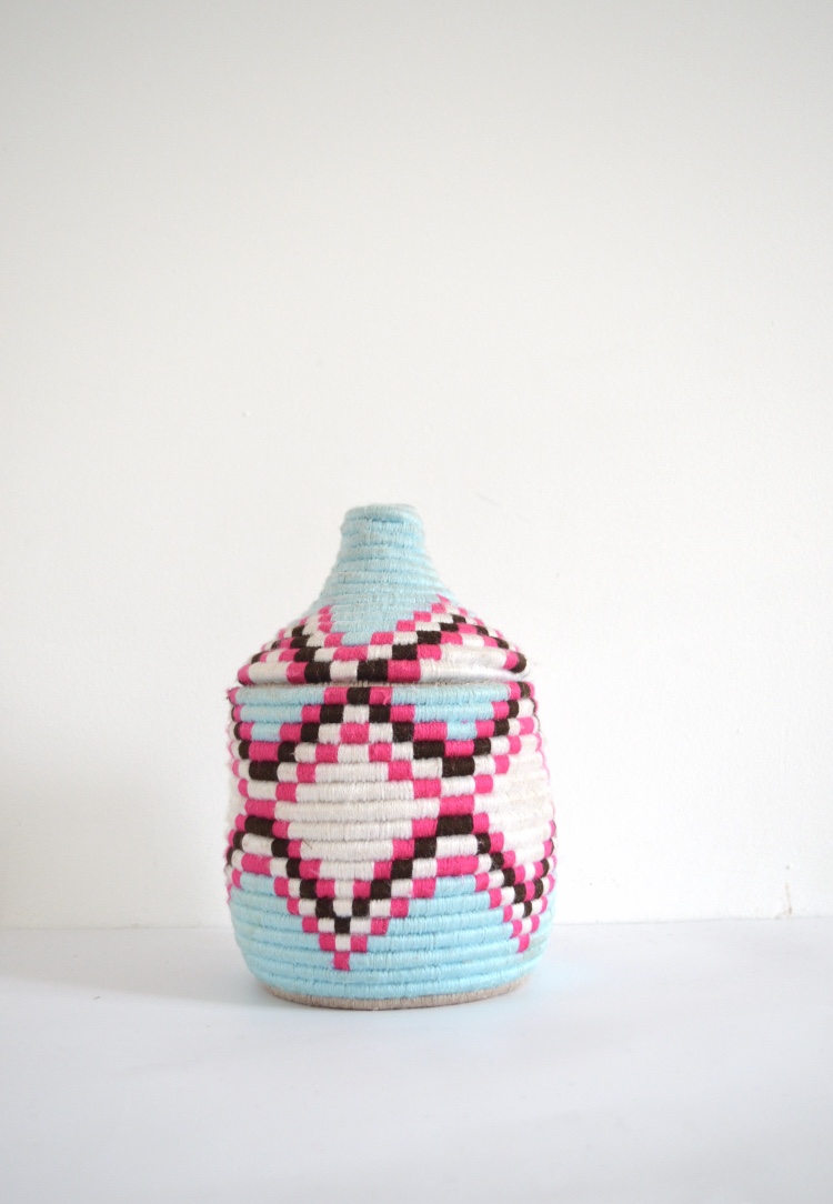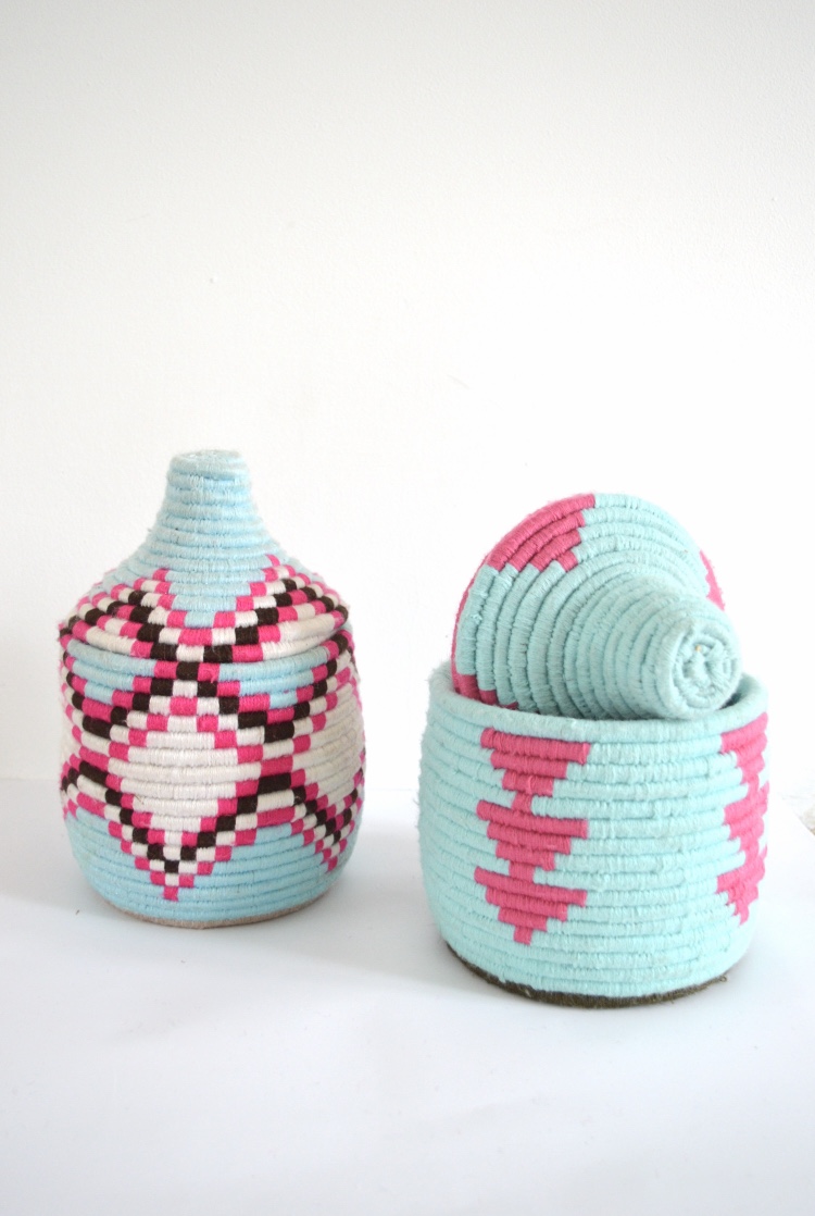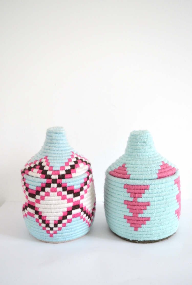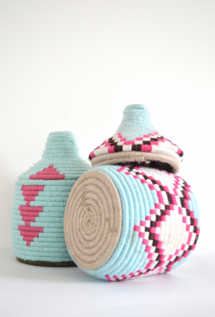 SOLD SOLD SOLD Berber Basket x 2 Handwoven Vintage Moroccan Wool Lidded Basket