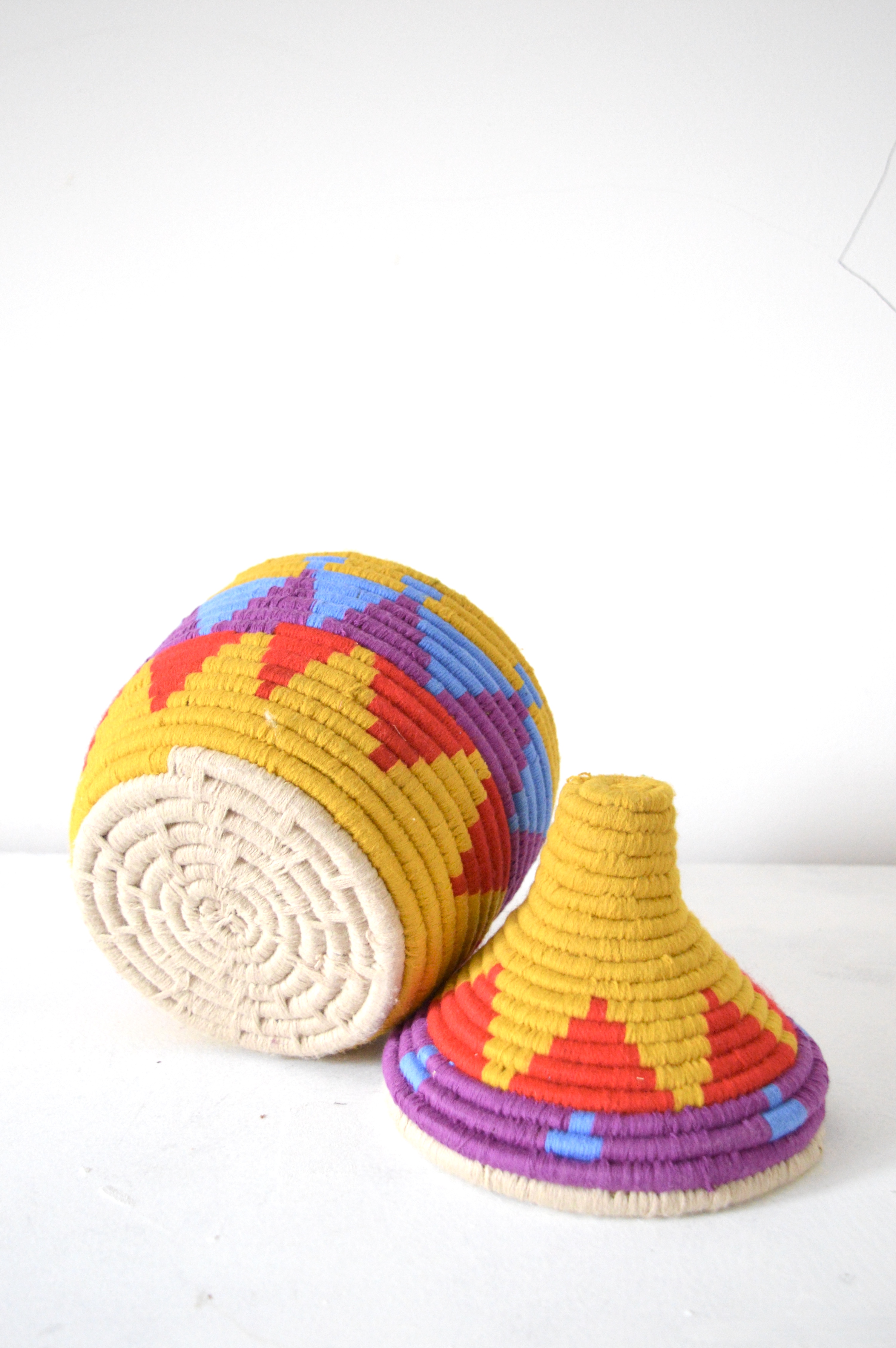 Berber Basket Handwoven Vintage Moroccan Wool Lidded Basket