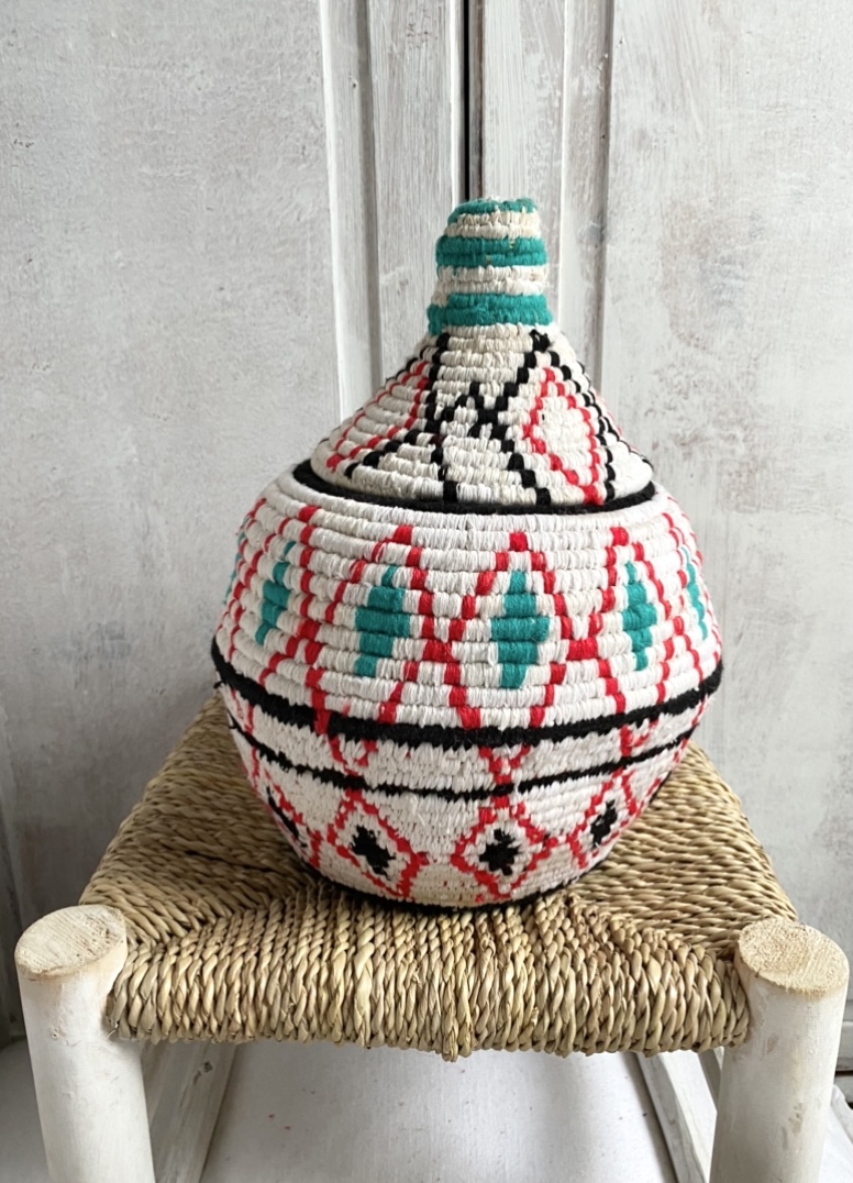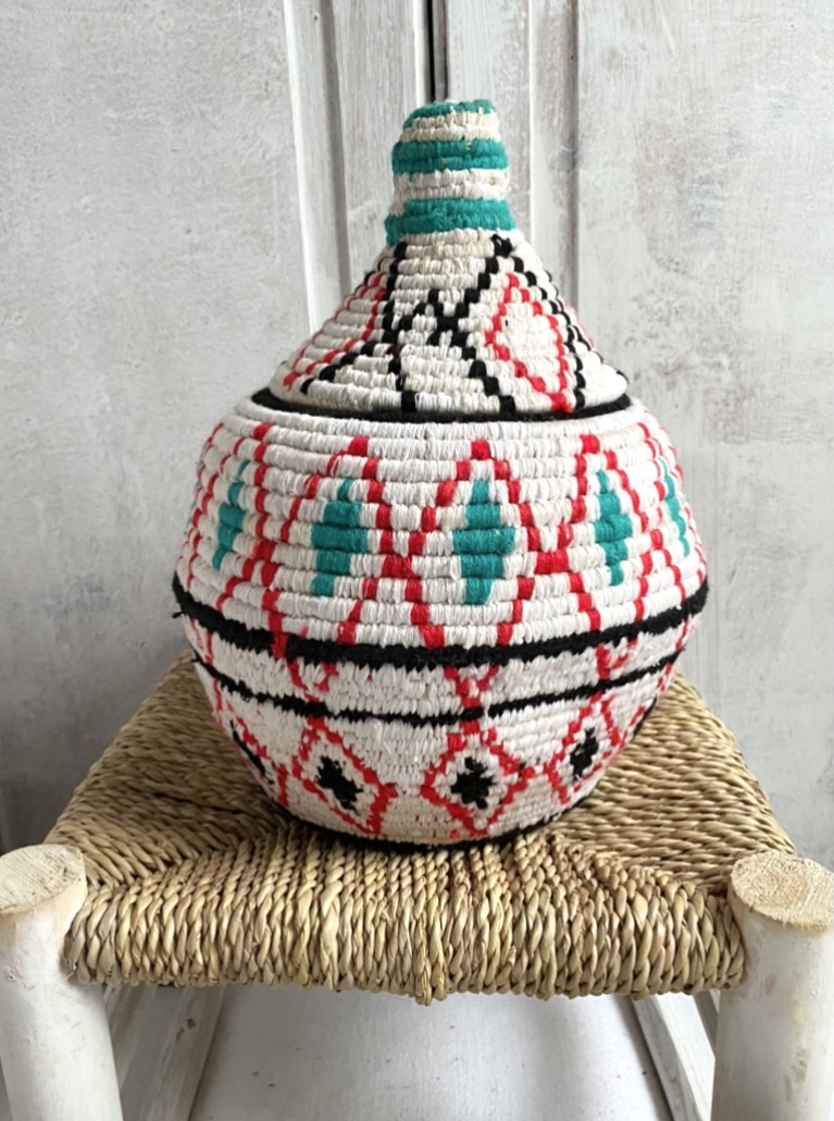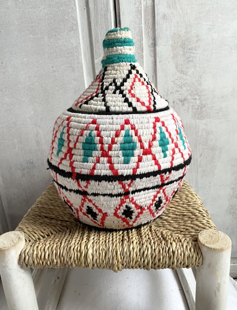 SOLD SOLD SOLD Berber Basket Handwoven Vintage Moroccan Wool Lidded Basket