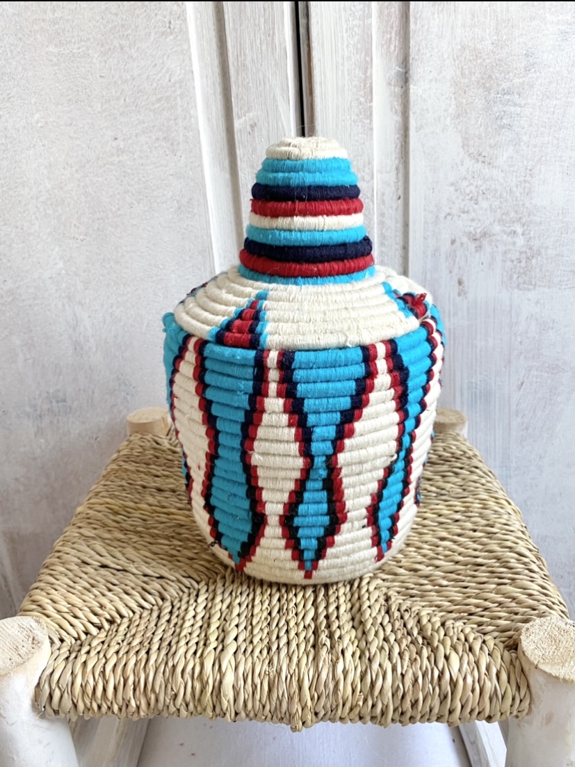 SOLD SOLD SOLD Berber Basket Handwoven Vintage Moroccan Wool Lidded Basket