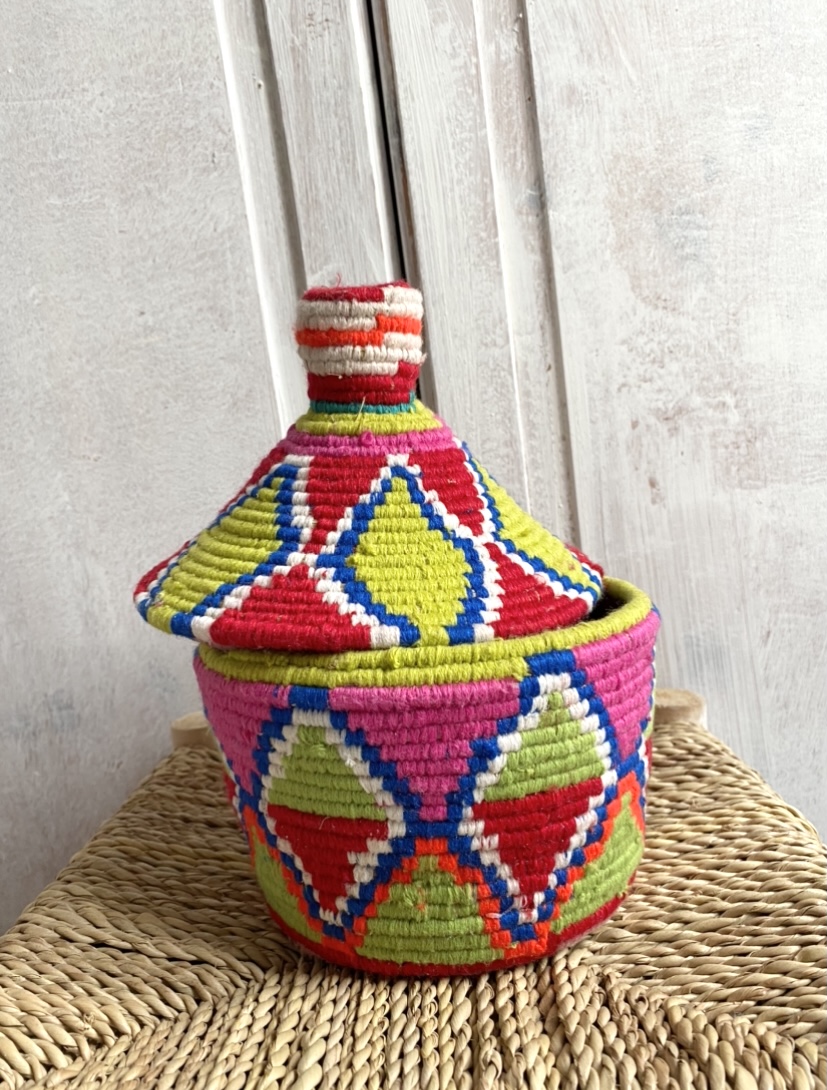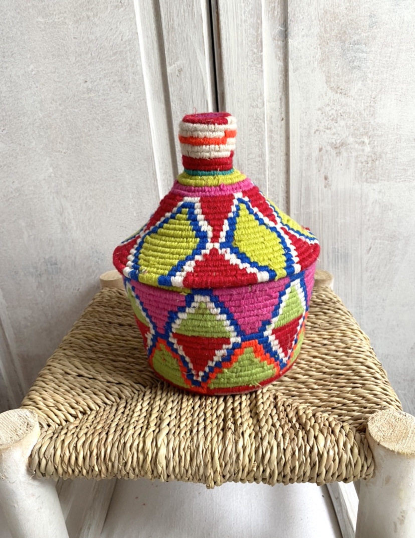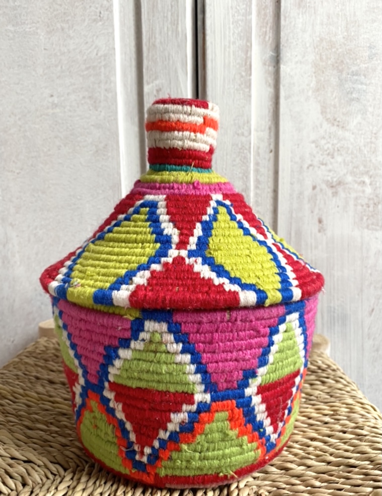 Berber Basket Handwoven Vintage Moroccan Wool Lidded Basket
