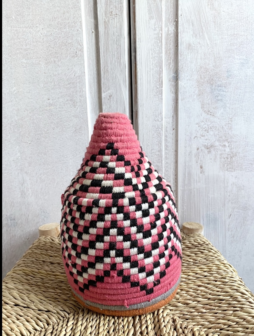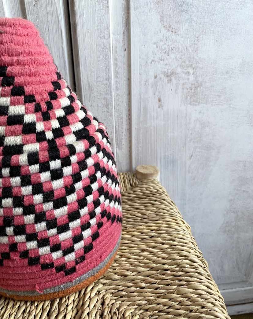 Handwoven Moroccan Berber Baskets were crafted to store "Khobz" Bread. Contrasting colours and Abstract designs create an individual unique item.