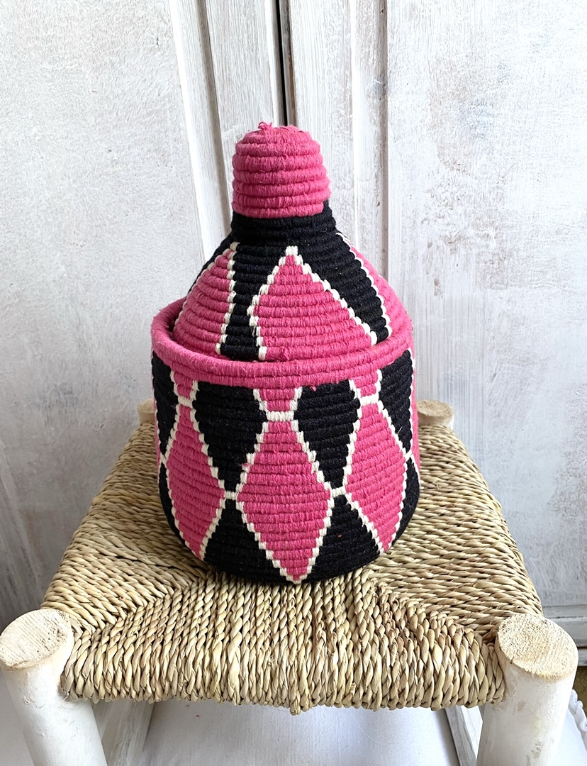 SOLD SOLD SOLD Berber Basket Handwoven Vintage Moroccan Wool Lidded Basket