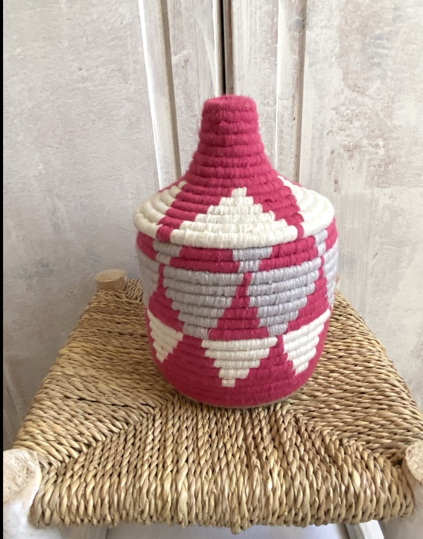 SOLD SOLD SOLD Berber Basket Handwoven Vintage Moroccan Wool Lidded Basket