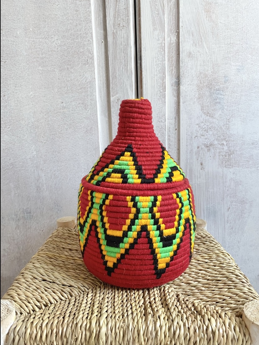 Handwoven Moroccan Berber Baskets were crafted to store "Khobz" Bread. Contrasting colours and Abstract designs create an individual unique item.