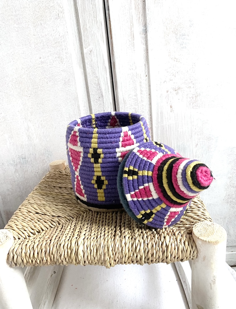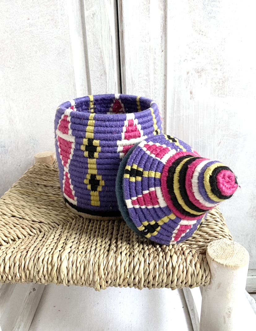 SOLD SOLD SOLD Berber Basket Handwoven Vintage Moroccan Wool Lidded Basket