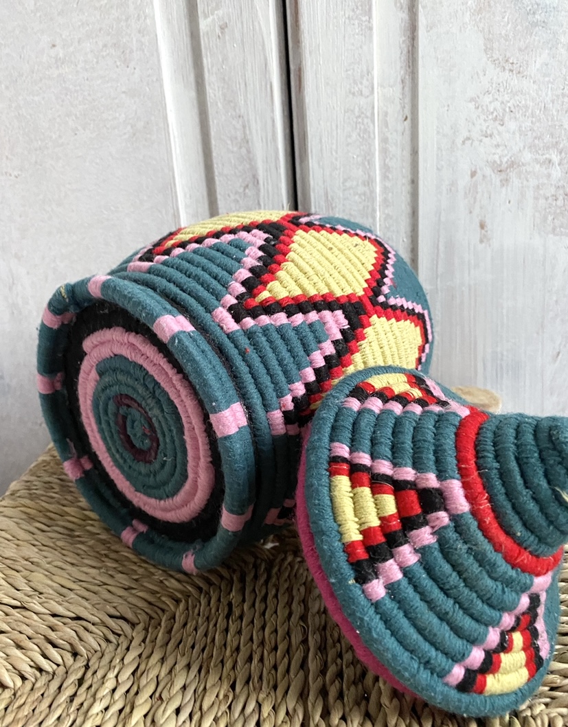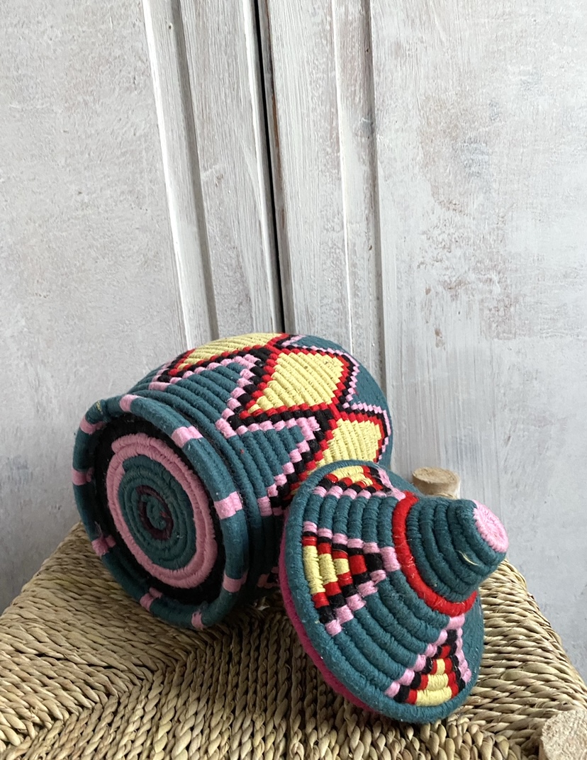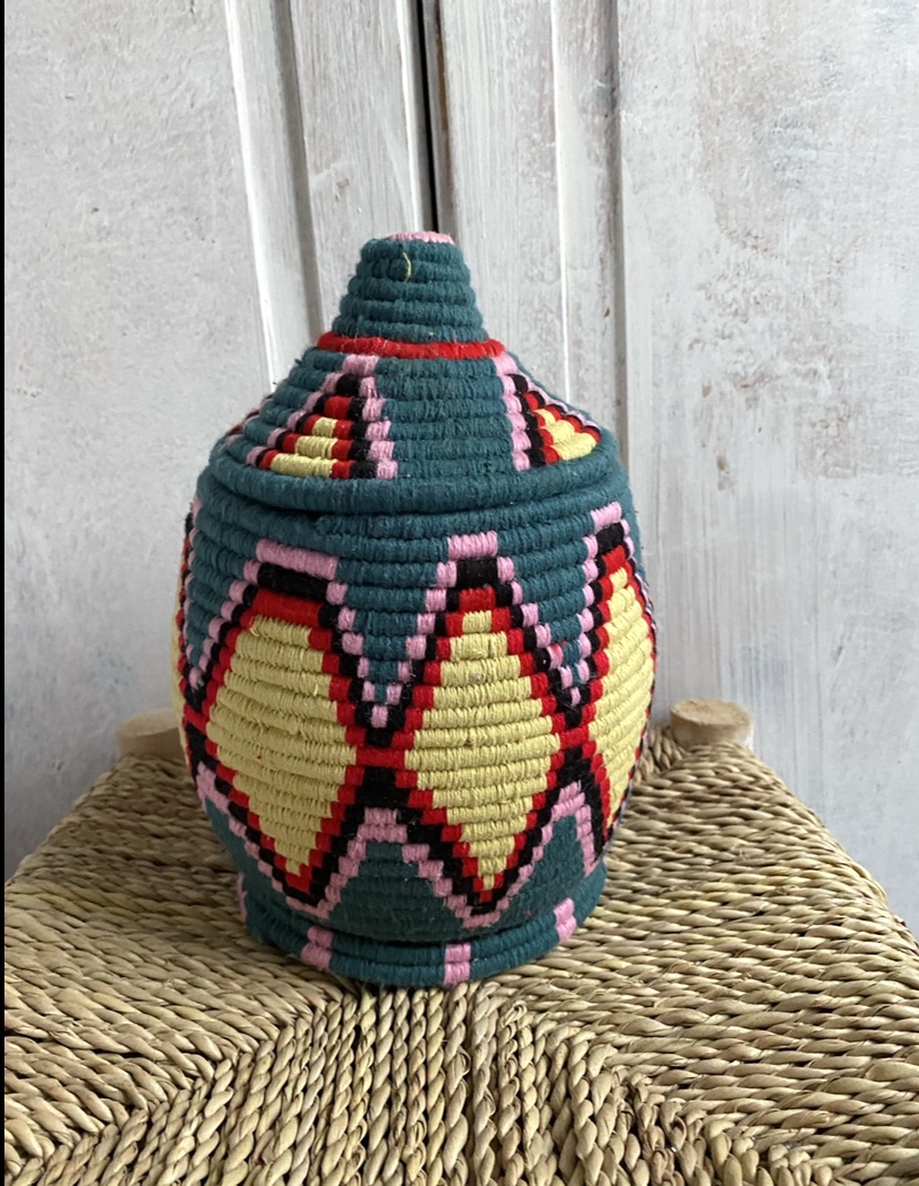 SOLD SOLD SOLD Berber Basket Handwoven Vintage Moroccan Wool Lidded Basket