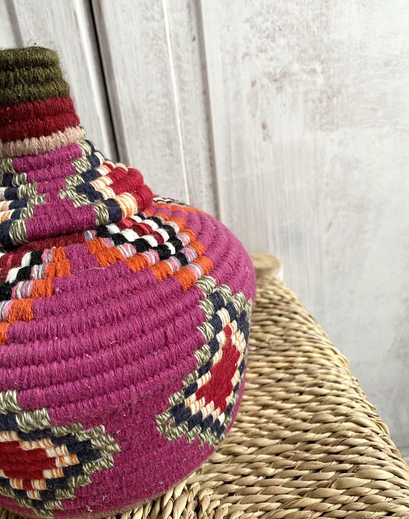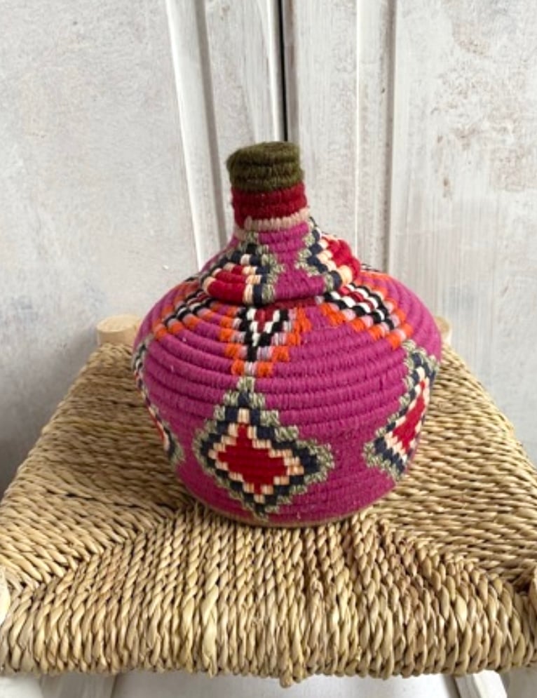 SOLD SOLD SOLD Berber Basket Handwoven Vintage Moroccan Wool Lidded Basket