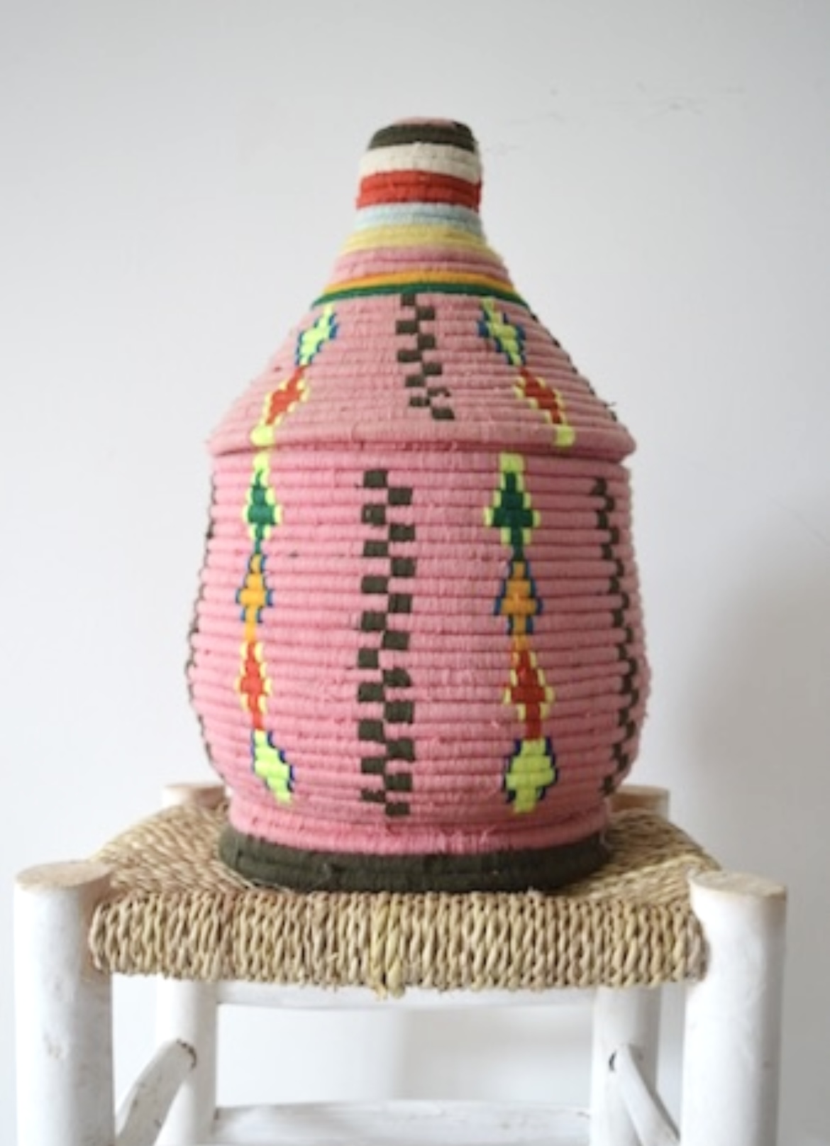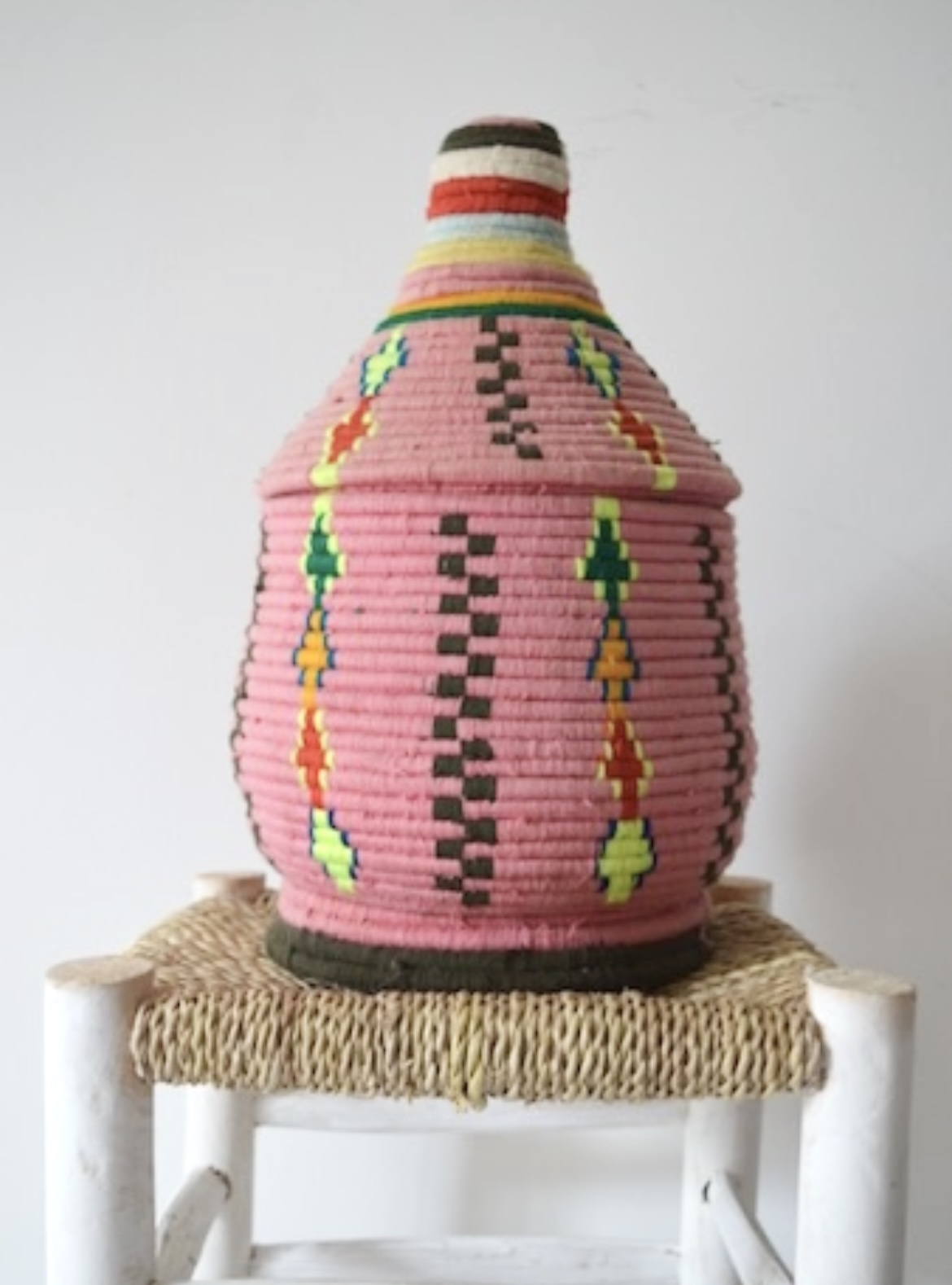 XL Berber Basket Handwoven Moroccan Wool Lidded Basket
