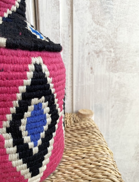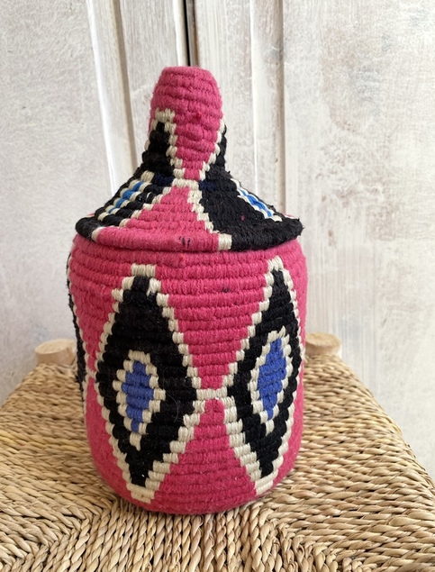 Berber Basket Handwoven Vintage Moroccan Wool Lidded Basket