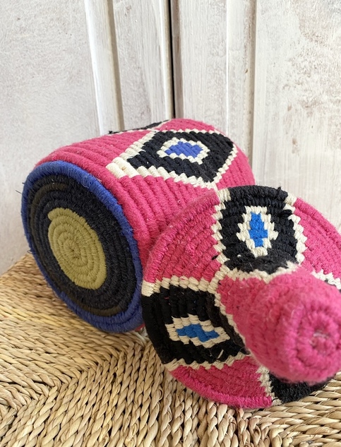 Handwoven Vintage Moroccan Berber Baskets were crafted to store "Khobz" Bread. Contrasting colours and Abstract designs create an individual unique item.