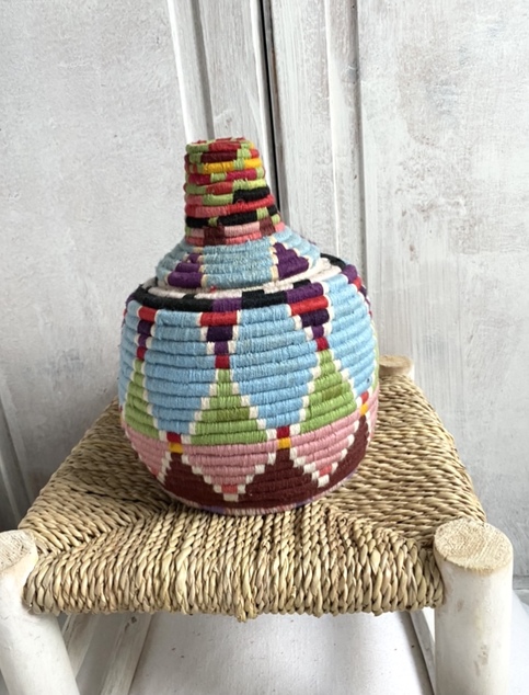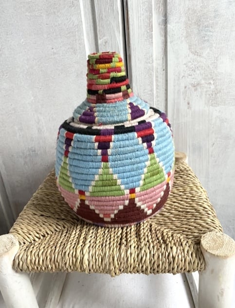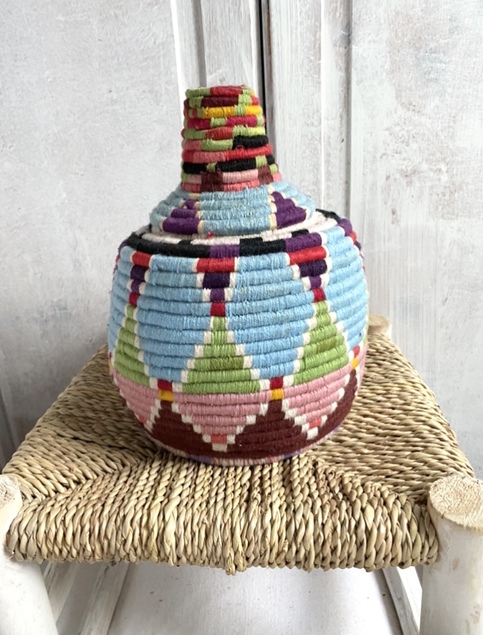 SOLD SOLD SOLD Berber Basket Handwoven Vintage Moroccan Wool Lidded Basket