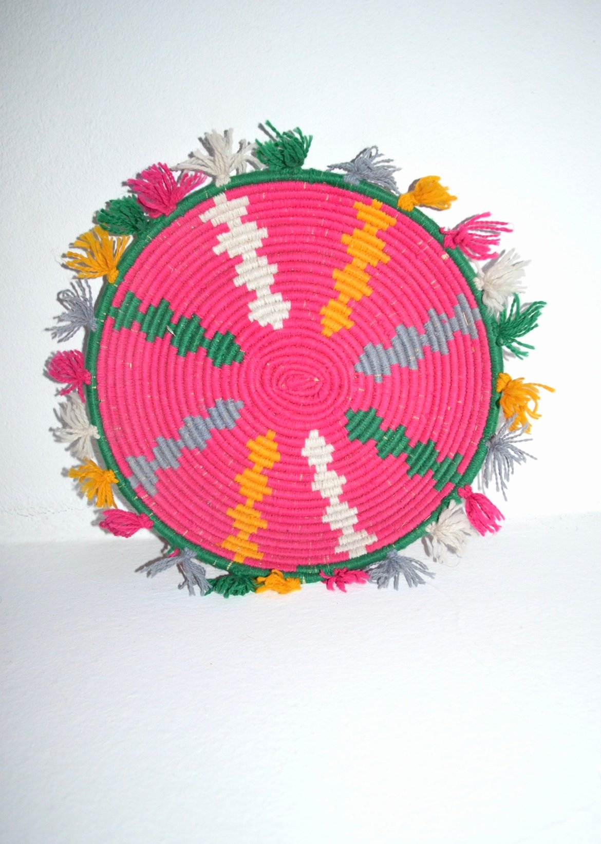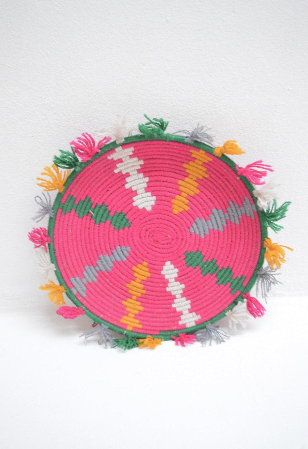 Handwoven Vintage Moroccan Berber Baskets Bowls were used to servie Bread Pancakes or as used for storage. Dazzling colours and Abstract designs create an individual unique item.