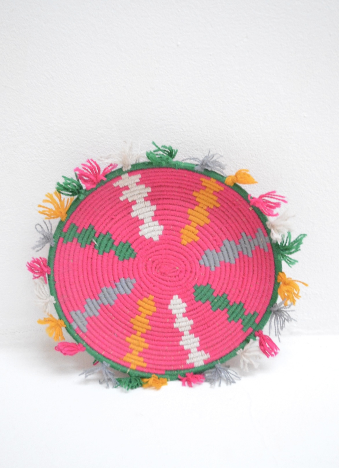 Berber woman in Morocco handcraft these beautiful baskets using a combination of wool wrapped around coiled rattan strips, they are traditionally used for carrying bread. Every design is special and unique and woven from the heart making this a statement piece for your home.