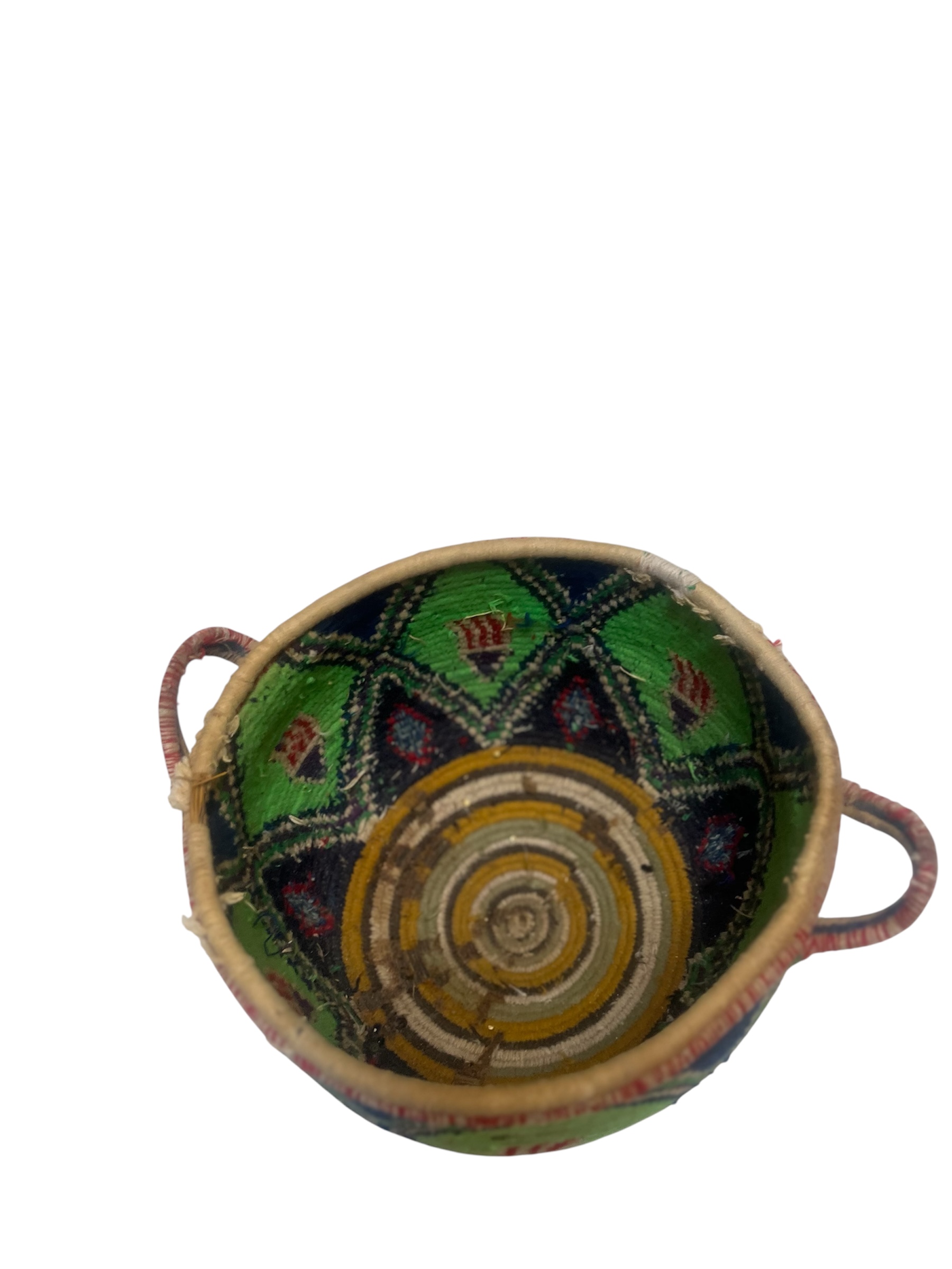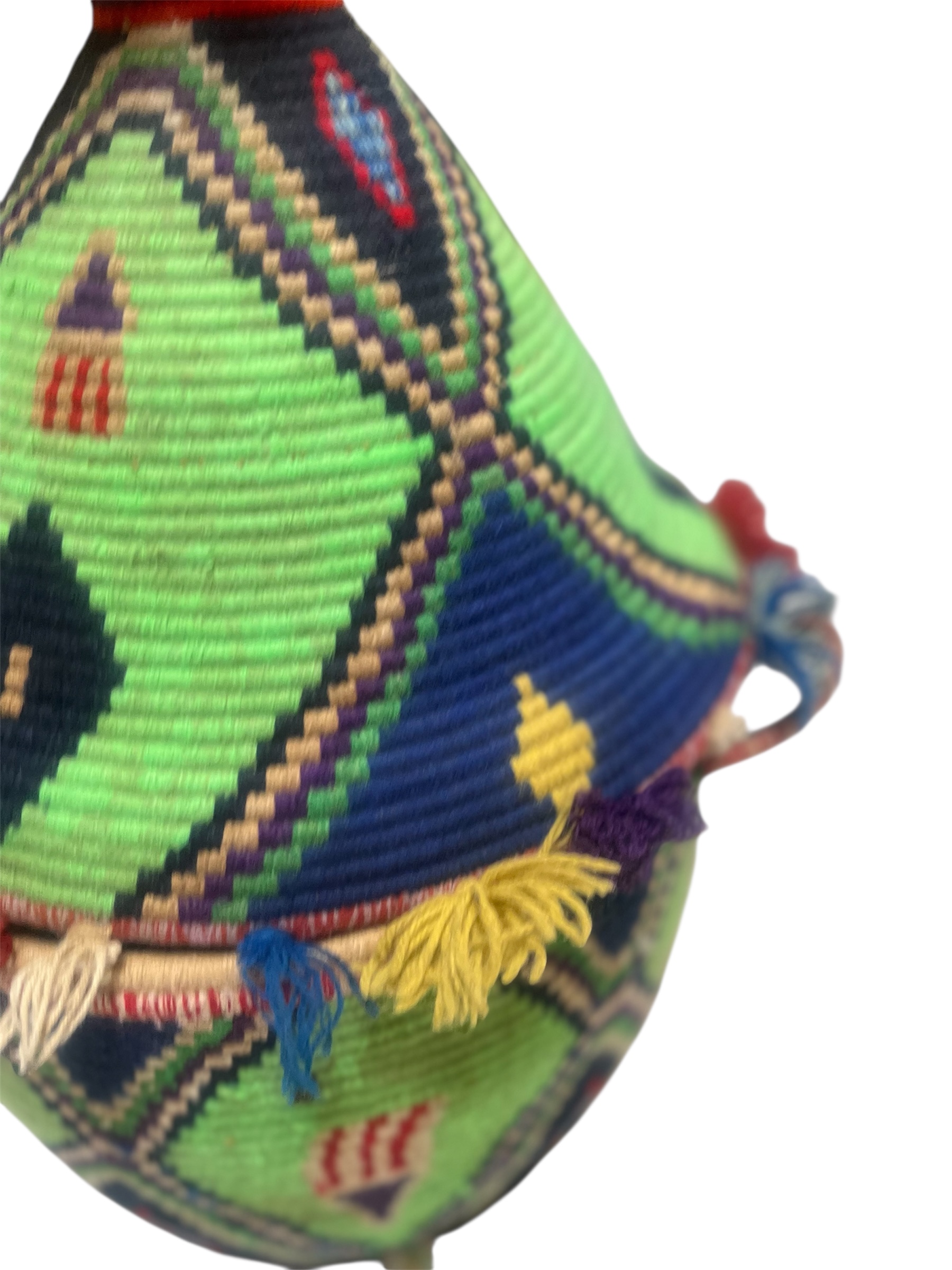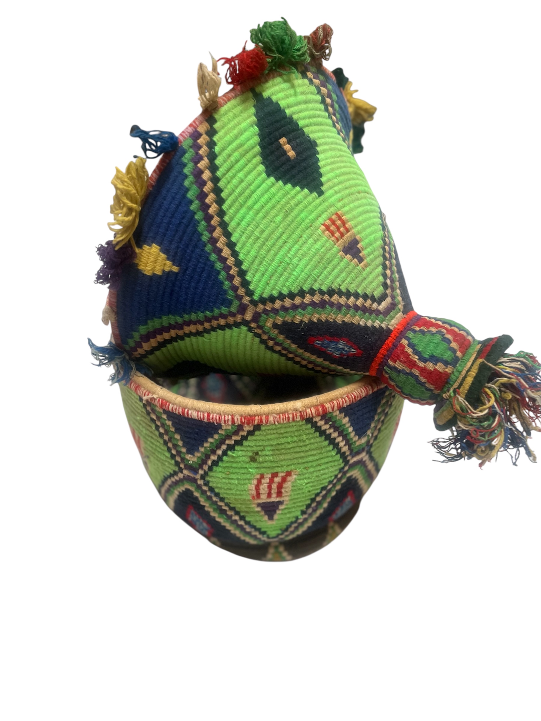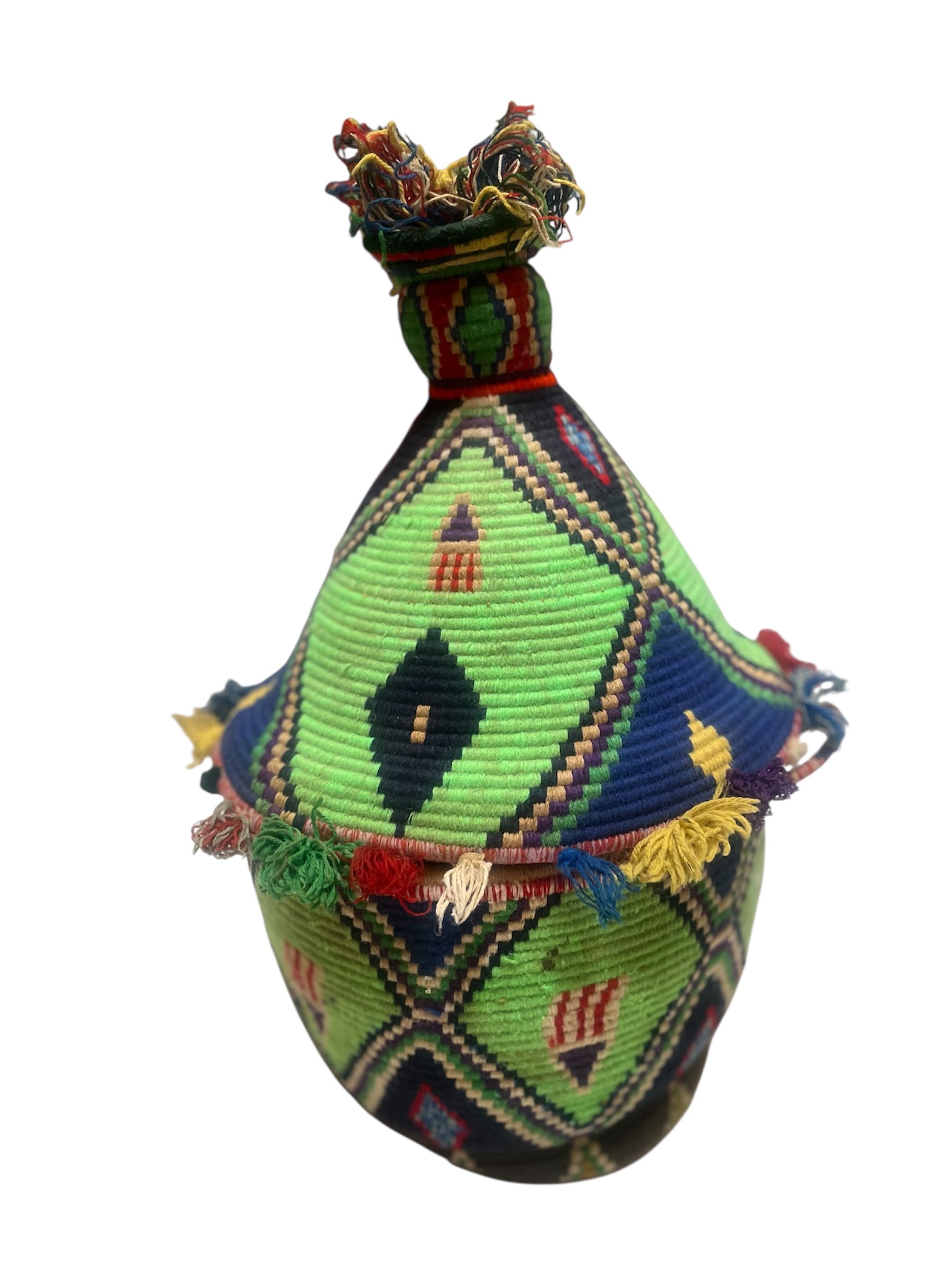 Vintage Handwoven Vintage Moroccan Berber Baskets were crafted to store "Khobz" Bread. Contrasting colours and Abstract designs create an individual unique item.
